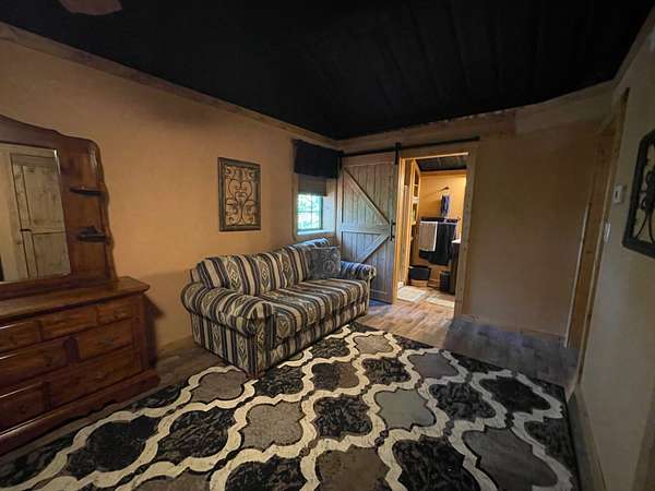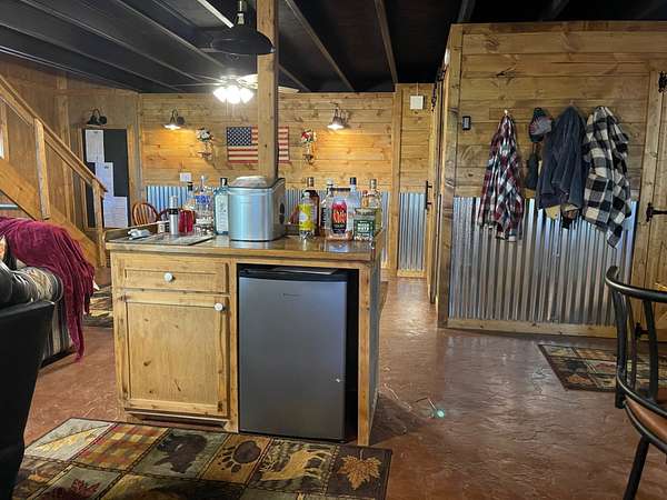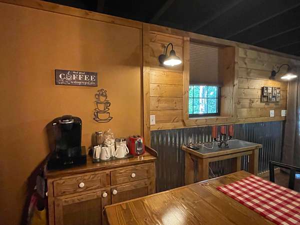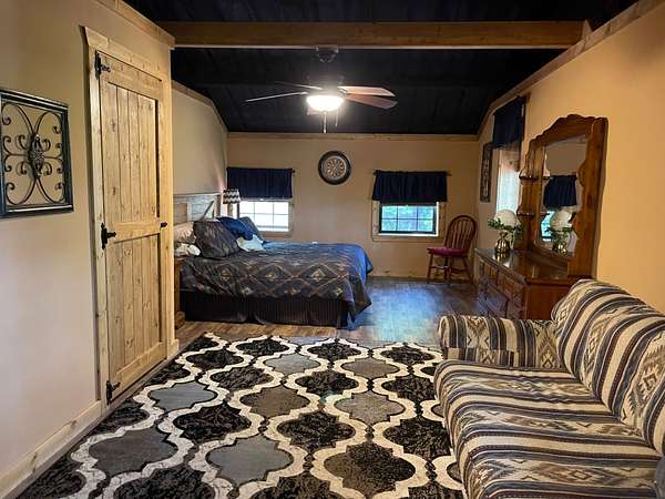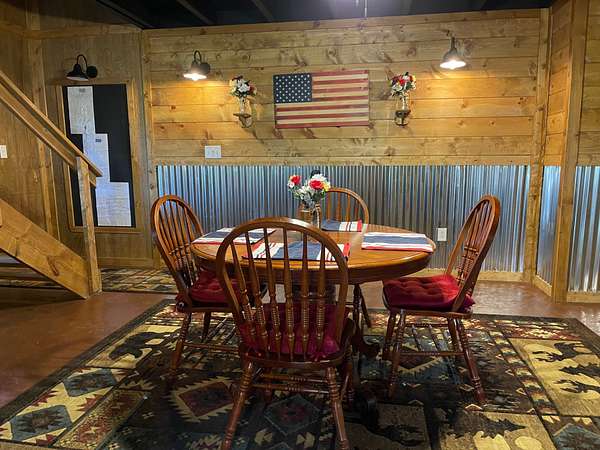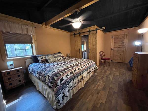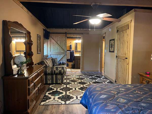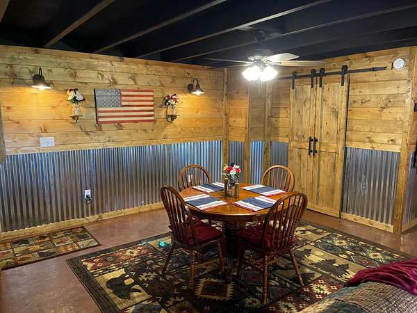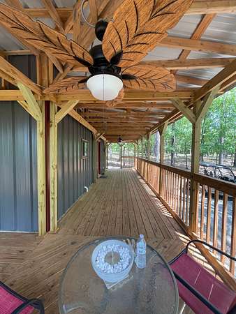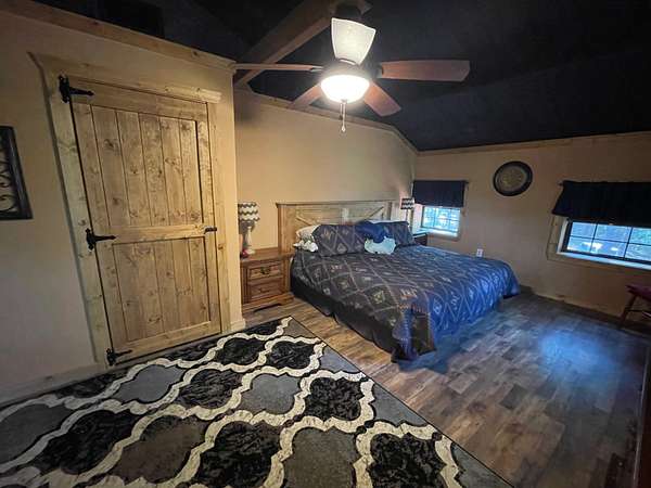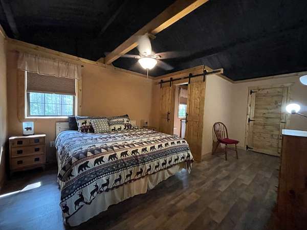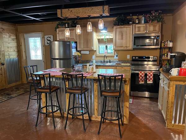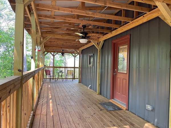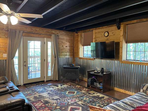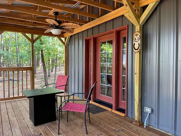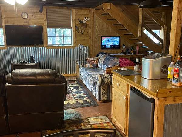 Beautiful two Story Cabin with Mountain views located in the Kiamichi Wilderness. The Kiamichi Wilderness is a small community of approximately 10,000 acres of privately owned land located within the Kiamichi Mountain range. There are trails, creeks and beautiful scenery here. The 1800 SQ Foot cabin is move in ready and fully furnished, just bring your suitcase and make this your weekend getaway or full time residence. Enjoy the beautiful mountain views from the 560 sq ft covered wrap around porch. There is a 20x40 storage container with electric and lighting to store your recreational vehicles or tools. In the home there are 2 bedrooms and 2 1/2 bathrooms. Both of the large bedrooms are upstairs and each one has an ensuite private bathroom and a walk in closet. On the main floor there is a 1/2 bathroom and the open concept Kitchen, dining room and family room. There is a coffee bar in the kitchen, stainless steel appliances, and a breakfast bar with 4 bar stools. A refreshment bar with an ice maker and bar refrigerator for entertaining sits at the edge of the dining room. All of the kitchen cupboards, refreshment bar, coffee bar, breakfast bar and table in the family room are handcrafted pine with beautiful workmanship. All of the inside doors are barn door design. The walls are ship lap pine and corrugated metal. There is a laundry room with a 30 gallon hot water heater and storage shelving. The whole home has been well insulated, the walls are double insulated and the roof has roof foam. There is central heat and air and also a propane fireplace in the family room. Included is a cell phone booster and an 8 camera security system. For internet and Wifi there is Hughes net satellite. There is so much here being offered as the home comes completely furnished including the pots and pans, grill and more. Make this your private getaway or permanent residence. Home will pass VA, FHA loans.