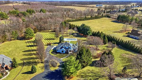 Tucked away on a peaceful cul-de-sac, this stunning home welcomes you with a private circular driveway and impeccably manicured landscaping spanning over 2.3 acres of beautifully maintained grounds. Step inside the impressive two-story foyer, where elegance and warmth immediately shine. The spacious living room features a cozy painted brick fireplace, crown molding, and a striking tray ceiling, creating the perfect setting for both relaxing evenings and stylish entertaining. The updated kitchen is truly the heart of the home, showcasing stainless steel appliances, tile backsplash and granite countertops. The dining room is open to the kitchen, making it a perfect space for gatherings with family and friends. The owner's suite is on the main floor and serves as a private retreat with a large bathroom and walk in closet, blending comfort and convenience. Upstairs, you'll find two generously sized bedrooms and a full bath, along with a versatile bonus room ideal for a recreation space, home office, or additional bedroom. The finished basement is bright, open and includes plenty of room for a rec room and gym. The basement also includes a 4x4 window where an additional bedroom could be added. Outside, entertain family and friends on the large deck for take a swim in the sparkling swimming pool. This is the dream home you've been waiting for. Set up a showing today!
