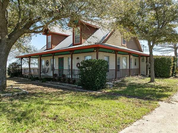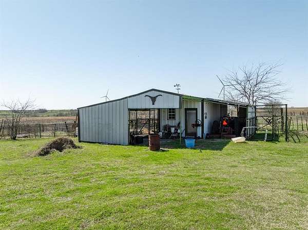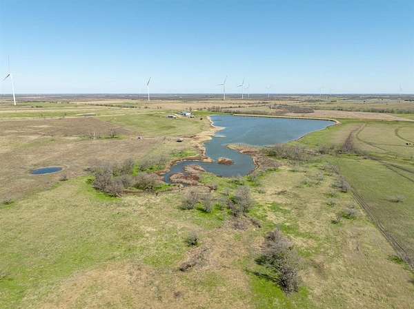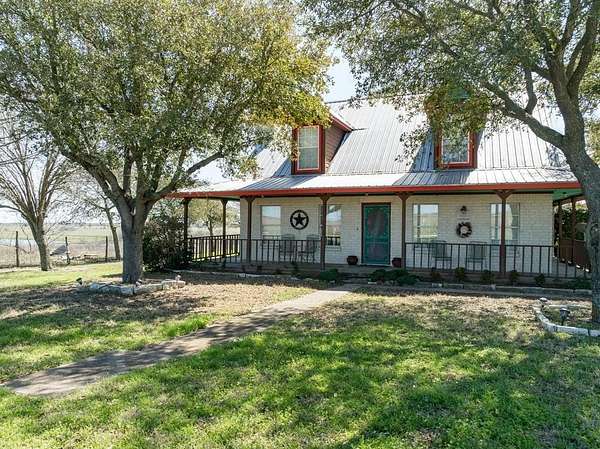 115.70 Acre Ranch land with a 2 story white rock Ranch house placed right in the middle of it forth most gorgeous Texas Sunrise and sunset views. 360 degree views of the property which include being able to see the cattle grazing, ducks and waterfowl down on the lake, and any other wildlife that might decide to wander by. The 3 Bedroom 3 bath ranch house has wrap around porch and a covered porch at the back. The fireplace has propane to it for easy start-up & clean up. 2 bedrooms upstairs with double walk-in closets and a full bath between. Master bedroom and bath suite is convenient to the living area with extra-large walk-in closet space. Formal dining room off the kitchen as well as a breakfast noon. Kitchen is handy with small appliance garage, stove, oven, dishwasher, and ample tile counter and cabinet space. Handy full bath with step in shower right at the back door for easy clean up after a long day working cattle, riding the pastures, or baling hay. Separate bonus room has been used for a handy home office space with a private door to the back also. Utility room has a clean-up sink, and handy cabinets. The detached garage with carport has 2 doors which will handle 2 vehicles, a few 4 wheelers or atv's and workshop & storage space to boot. Metal shop by the corral where much leather was transformed into beautiful pieces. Land is fenced and cross fenced, hay field, pasture, and metal corral. Land is currently leased but will not encumber a sale. Pasture is mostly rolling native grasses. Make an appointment to see this property which would be great to see the longhorn roam on.