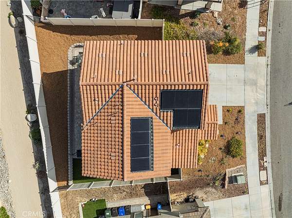 This stunning beauty is located in the Sola community of the highly sought after Skyline Ranch community and includes OWNED SOLAR! It boasts 3 bedrooms, 2.5 baths, PLUS a downstairs den/office space, and an already landscaped backyard. Your open concept kitchen includes quartz countertops, grey shaker style cabinetry, stainless steel appliances and farmhouse sink, a center island doubling as a breakfast bar, and a pantry. Natural light pours in through the large picture window in the living room. Backyard sliders take you to your low maintenance, hardscaped backyard with pavers and a side yard with artificial turf. Upstairs you'll find your 3 bedrooms, 2 full bathrooms each with double sink vanities, and a dedicated laundry room for added convenience. Your spacious primary suite features its own ceiling fan, a walk-in shower, soaking tub, and a large walk-in closet. Your home also features a tankless water heater.