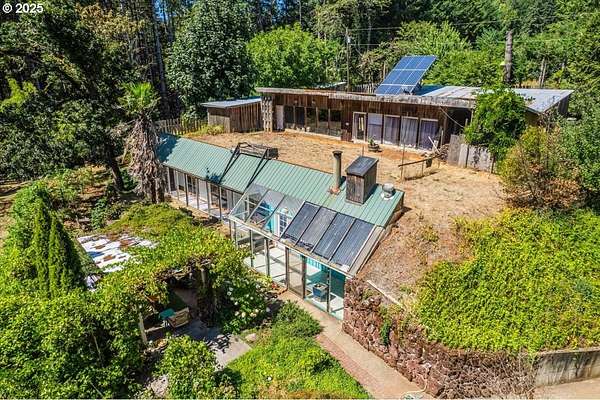 A genuinely unique property just under 12 acres outside of Newberg, offering an underground residence, several outbuildings, a bunker-style shop, and ponds. This property is a lifestyle itself, and cannot be replicated. The house is built into the gently sloping hill and is entirely covered by the environment, aside from an upstairs den and a one-car garage. The residence has two large bedrooms, two full bathrooms, a beautiful dining area, a spacious living room, and a welcoming sun porch. The property gently slopes down to a bunker-style shop built into the ground, as well as another barn offering ample storage. The lower pond is year-round, and there are two other seasonal ponds on the property. There is no shortage of storage with a large covered parking area and two more outbuildings. *With the home being partially underground, this property is likely not traditionally financeable.