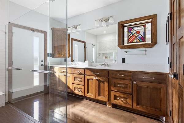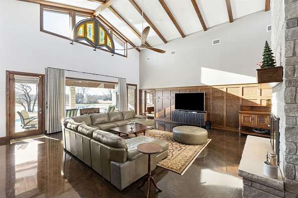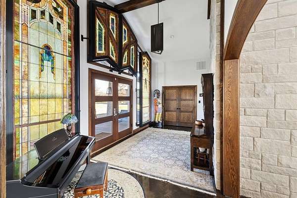 At the heart of the property is a custom built home that blends luxury and comfort seamlessly. High end finishes like quartz countertops, custom woodwork, and antique stained glass bring timeless character, while thoughtful details such as a chef’s kitchen with Sub-Zero refrigeration, custom Pella windows, and sleek epoxy floors elevate everyday living. Step outside to year round outdoor enjoyment with a heated porch, heated pool & spa, misting system, outdoor shower, and a vintage canoe waiting by the pond.