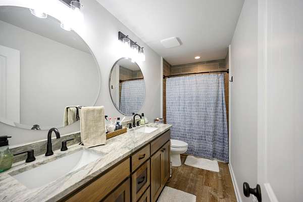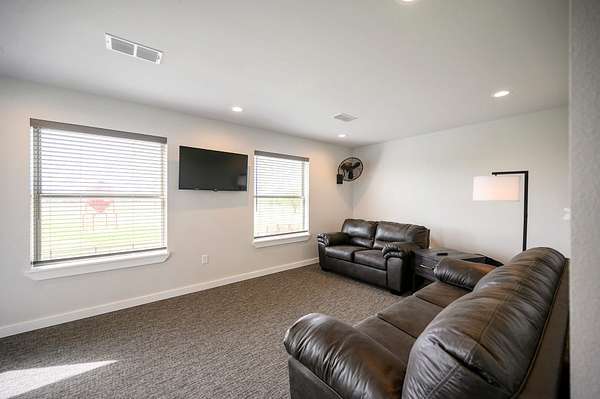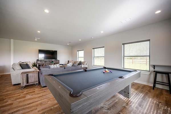 For additional entertainment you will find an amazingly modern 2-story bunk home with 1200 sq. ft on the lower floor boasting a full-service quality kitchen and 1200 sq. ft on the second level, comfortably sleeps 14 and can be expanded to 25. Full-sized quality pool table allows for plenty of entertainment and family fun. This cleverly designed custom bunkhouse with spacious bunkbeds and two primary master bedrooms allows for ideal distribution of space and family management and can serve as a private family retreat. Designed with a blend of modern design and exceptional quality. Every piece was selected to display that it was built with quality to last and a commitment to excellence and craftmanship using only premium high quality sourced materials.