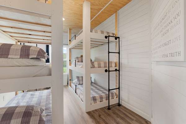 Featuring 3 spacious bedrooms, including a versatile bunkroom, and 2 full bathrooms, this property can comfortably accomodate your family and guests. The open-concept living area showcases a modern farmhouse design with upscale finishes, ideal for hosting family gatherings or quiet evenings under the stars.