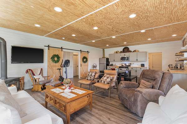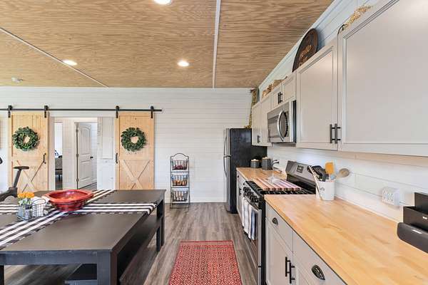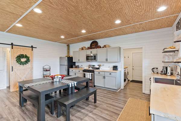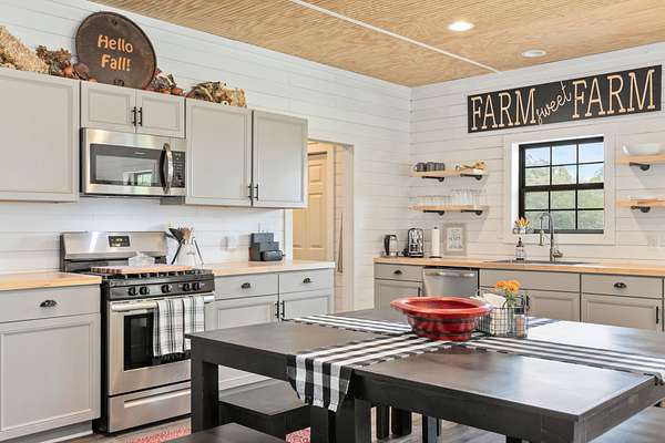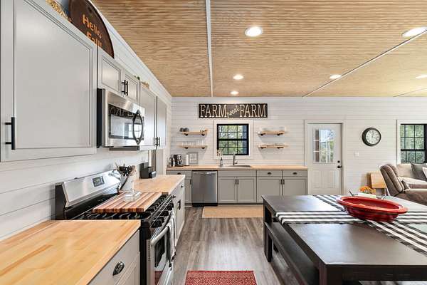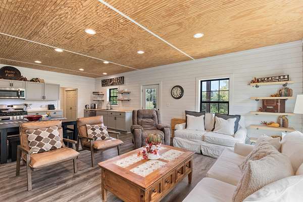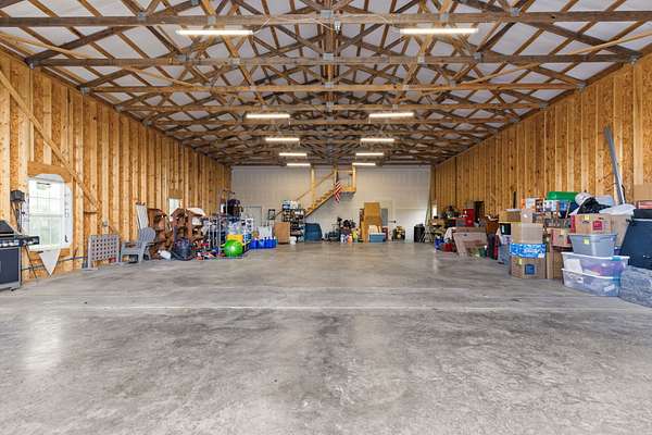At the heart of the property sits a well appointed barndominium, ideal as a full-time residence, weekend getaway, or hunting lodge. Surrounded by peaceful countryside, the land unfolds with a mix of open ground and wooded terrain, creating a diverse landscape rich with wildlife perfect for hunting enthusiasts or those who simply enjoy observing nature.