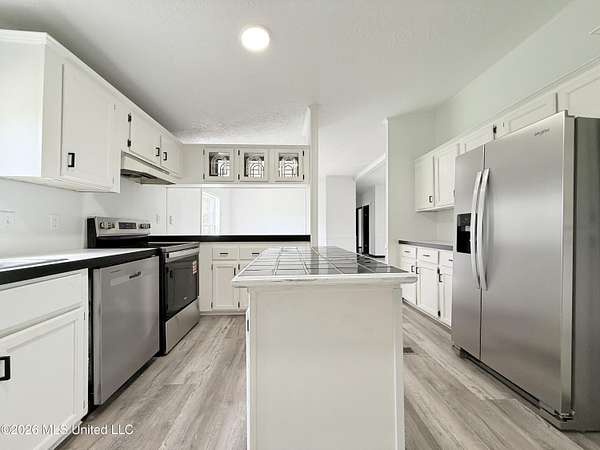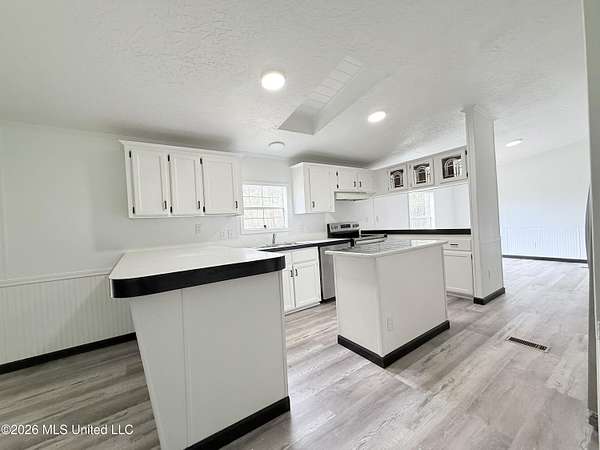 Discover the perfect blend of modern updates and peaceful country living in the highly regarded Bogue Chitto School District at 1818 Big Creek Dr, Bogue Chitto, MS! This extensively remodeled 4-bedroom, 2.5-bath home sits on nearly 9 acres of private, picturesque land, featuring predominantly hardwood regeneration, established trails, and deer hunting opportunities right in your backyard. The large open yard is dotted with beautiful mature oaks, while a stunning crepe myrtle-lined drive welcomes you home. Step inside to find a fresh, move-in-ready interior with new flooring throughout, updated light fixtures, and fresh paint. The thoughtful split floor plan offers privacy and functionality, with the three secondary bedrooms and a shared hall bath located at one end of the home. At the heart of the home lies a cozy gas fireplace anchoring the rear living room, conveniently centered between the primary bedroom, kitchen, and mudroom with its convenient half bath. The kitchen shines with brand-new stainless steel appliances--including a dishwasher, stove, and refrigerator--plus ample counter space, plentiful cabinets, and a central island perfect for meal prep or casual gatherings. Adjacent to the kitchen, enjoy a dedicated dining area and a welcoming front living room. Outside, the home boasts a refreshed exterior with newly redone and painted porches, custom-made black wood shutters, and HUD-compliant painted black skirting for a polished, modern curb appeal. Whether you're seeking a serene retreat, space for family and hobbies, or simply a beautifully updated home in the desirable Bogue Chitto area, this property delivers it all. Located less than 5 miles from I-55 Exit 30 and BC School and about halfway between Brookhaven and McComb, it offers easy access and convenience. Don't miss your chance to own this turnkey gem! Agent Owned
