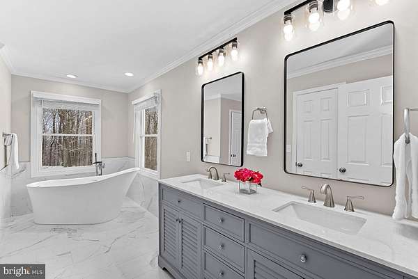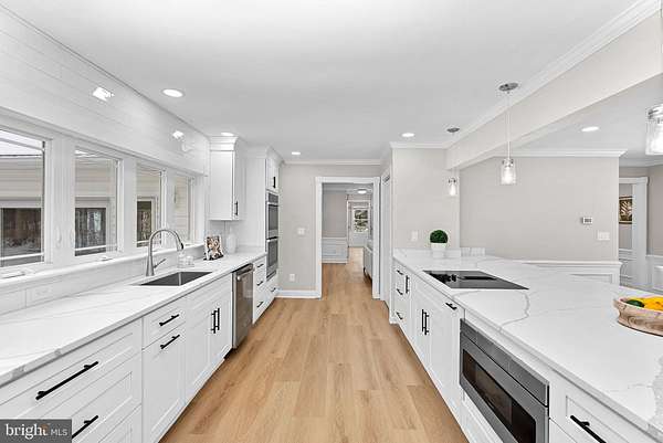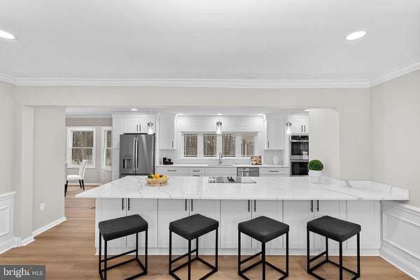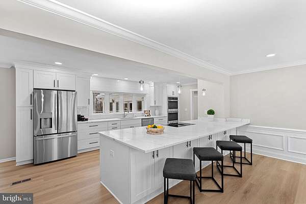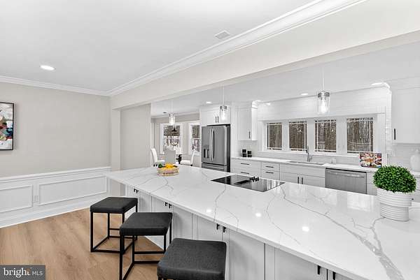Open house Saturday 12/13 1-3pm.....Updated Cape Cod in Stoneleigh Country Club with Main Level Living! This beautifully updated home offers over 4,600 sq ft with 5 bedrooms and 4.5 bathrooms, perfectly positioned on a rare, flat 5+ acre lot backing to mature trees-one of the most sought-after settings in Stoneleigh. Enjoy an inviting covered front porch and a backyard oasis ideal for a future pool, with plenty of room to add an additional garage if desired. Inside, the open and spacious floorplan is filled with natural sunlight. The main-level primary suite features an updated ensuite bath with a frameless walk-in shower, separate soaking tub, double sink vanity, and a large walk-in closet. The main level also includes a great room with a vaulted ceiling, a wall of windows, and French doors leading to the private patio, along with a cozy living room featuring a stacked-stone fireplace that adds warmth and character-perfect for entertaining. The home features a brand new designer gourmet kitchen with white shaker soft close cabinets and a large island with quartz countertops and oversized storage drawers for maximum functionality, as well as a built in spice rack. The kitchen also includes a white subway tile backsplash and new stainless steel appliances including an induction cooktop and double ovens. Wide plank LVP flooring runs throughout for a clean and cohesive look. The newly expanded kitchen addition provides space for both a formal dining area and a casual family eating area. For added convenience, the home offers two laundry rooms: a main level laundry and mud room and a brand new upper level laundry room. A beautiful oak staircase leads to the upper level, which offers 3-4 bedrooms, including an ensuite bedroom with a private bathroom, plus an updated hall bathroom. The finished walkout lower level with wide-plank LVP flooring includes a bedroom, full bathroom, rec room, home office/gym area, and generous unfinished storage. Additional highlights include an oversized side-load 2-car garage, a driveway that can accommodate at least eight cars, a brand-new driveway, and extra exterior storage under the great room-perfect for seasonal equipment and outdoor necessities. Recent updates include a new gourmet kitchen, new primary bathroom, LVP wide-plank flooring, updated main-level half bathroom, new upper-level hall bathroom, new upper-level laundry room, new driveway, interior paint and carpet, LED lighting, fixtures, and hardware. Located within the sought-after Stoneleigh Country Club, this meticulously updated estate offers access to world-class amenities, including a championship golf course, clubhouse, tennis courts, and swimming pool, all set against the backdrop of Loudoun County's scenic countryside. Ideally situated, this home is just 30 minutes from Dulles International Airport, under an hour to Washington, D.C., and minutes from Route 7, providing easy access to shopping, dining, and entertainment. With low HOA dues of just $100 per year and the convenience of public utilities-no well or septic to manage-this extraordinary property delivers the perfect blend of luxury, convenience, and tranquility. Schedule your private tour today and experience this one-of-a-kind home!