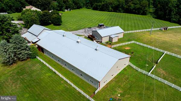 This exceptional 18-acre horse farm features a spacious estate exceeding 9,700 square feet of finished living space, complete with separate accommodations for in-laws. Nestled in a private setting, the property includes fenced pastures with a run-in shed, a 140' x 70' barn housing a 120' x 70' indoor riding arena and ten horse stalls, as well as a 60' x 40' shop and a 27' x 32' woodshop to support agricultural activities. The outdoor space boasts a large patio, an in-ground swimming pool with a pool house and gazebo area, and offers stunning views of lush greenery alongside a creek. This well-equipped property not only facilitates daily farm operations but also provides a move-in ready home with ample family space and luxurious features. The main level showcases beautiful hardwood flooring, a private office, and a great room with a cathedral ceiling, while the gourmet kitchen is equipped with a double oven, granite countertops, a breakfast area, and a center island. The upper level includes a master suite featuring herringbone hardwood flooring, a walk-in closet, and a luxurious bath designed for a spa-like experience, complete with a jetted tub and a dual-sided walk-in shower. The fully finished lower level offers a recreation room with a wet bar and pool table, a movie room, four additional bedrooms, and a full bath, creating a complete separate living area. An attached three-car garage connects the main residence to the in-law quarters, which includes a full kitchen, living and dining areas, two bedrooms, a walk-in closet with laundry hookups, and a handicap-accessible full bath, making this property a comprehensive and desirable estate.