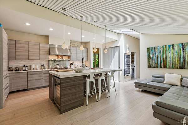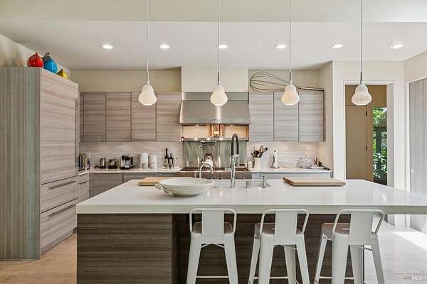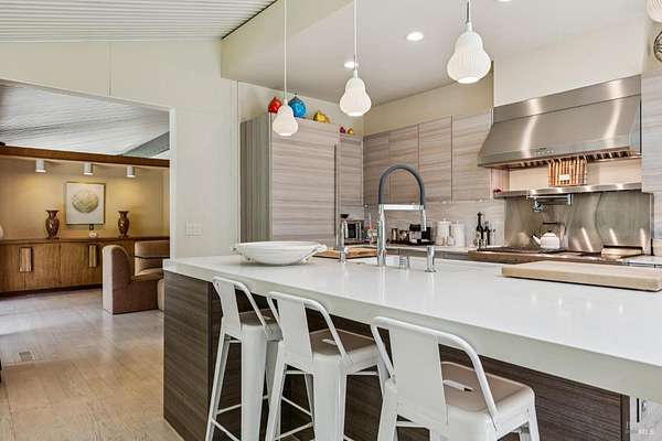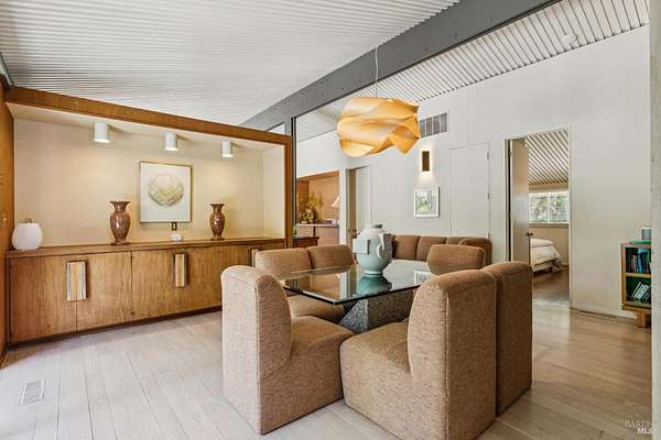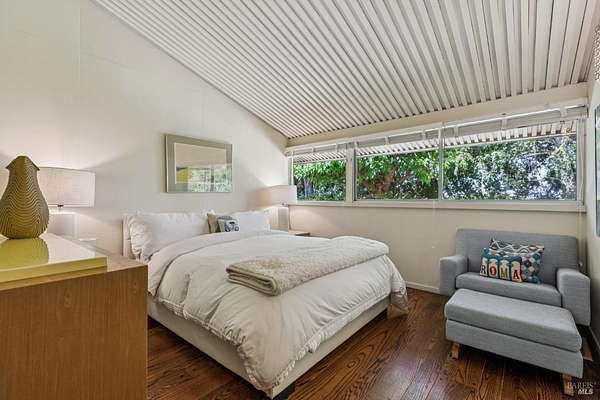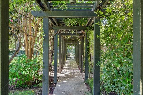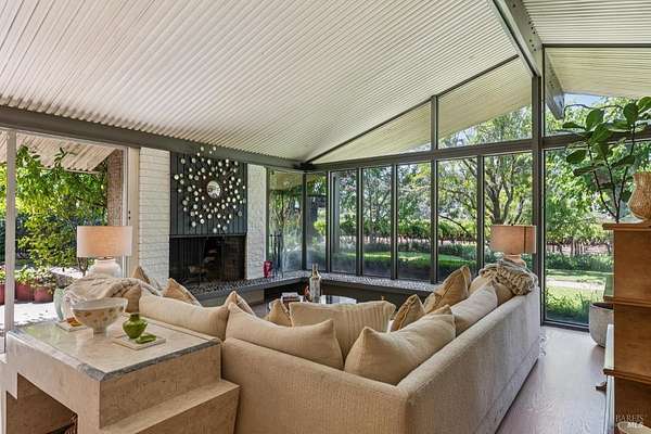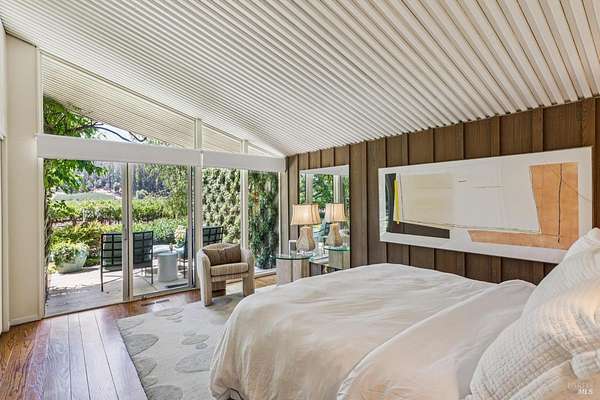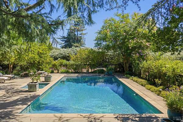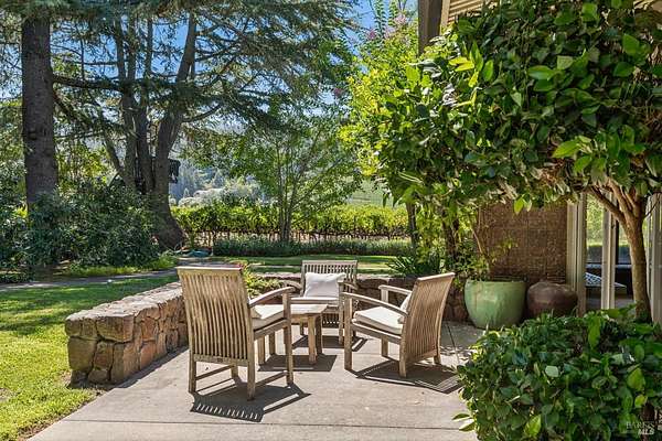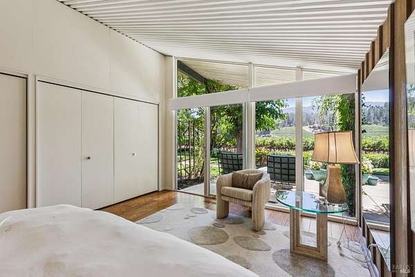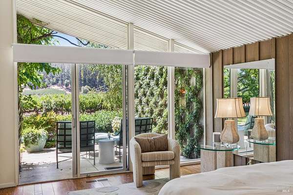 Fantastic Valley floor location West side of St Helena minutes to town surrounded by vineyard & Mountain views! Resort-like grounds with multiple outdoor entertaining areas including pool, spa, dining gazebo, BBQ area, bocce & shuffle board. Mid century modern fully furnished single level home with 3 ensuite BR, vaulted ceilings & floor to ceiling walls of glass that showcase the stunning views. Updated chef's kitchen featuring SubZero refrigerator/freezer, Thermador range, wine cooler & large center island with counter seating. Expansive greatroom with large seating area, fireplace & glass doors that open to the extraordinary grounds. Primary ensuite offers private courtyard with extraordinary views. Additional features include updated bathrooms, formal dining, hardwood floors, central air & heat, carport & lots of parking for guests.