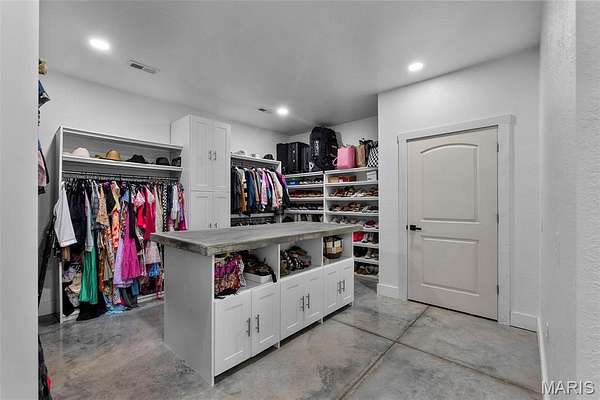 - Bar, Custom Cabinetry, Double Vanity, Granite Counters, Kitchen Island, Open Floorplan, Pantry, Separate Shower, Solid Surface Countertop(s), Storage, Tub, Vaulted Ceiling(s), Walk-In Closet(s), Workshop/Hobby Area