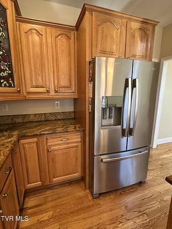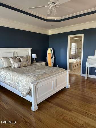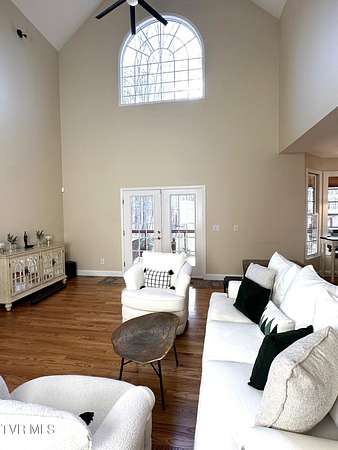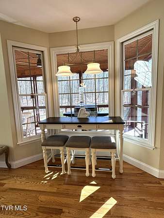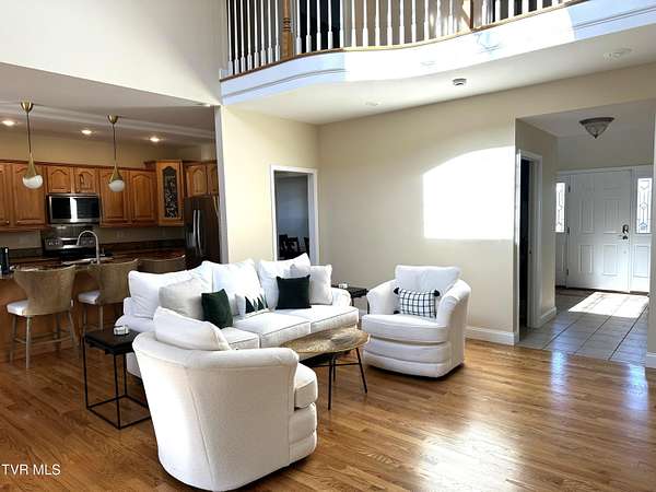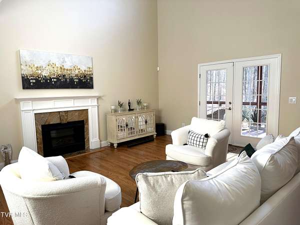 COUNTRY ELEGANCE is what you will find in this beautiful custom-built Cape Cod home. Peacefully nestled among mature trees, it is just minutes from I-81 with easy access to Johnson City, Bristol, and Kingsport. The sun-filled main level of this exquisite home features a two-story great room with cathedral ceilings, an electric fireplace, and a towering arched window. French doors in the great room lead to the expansive screened-in back porch with access to the fully fenced backyard - perfect for children and pets! The immaculate kitchen is well designed and fully equipped with stainless steel appliances, granite countertops, a cozy eat-in nook, and an island with additional seating space. The laundry room is conveniently located off the kitchen and has a utility sink, cabinet, and shelving with access to the 2-car garage and open back porch. The formal dining room, half bath, and oversized master bedroom are also located on the main level. The master bedroom boasts a tray ceiling and an en suite bathroom complete with jacuzzi tub, tiled shower, and walk-in closet. Two good-sized bedrooms, a bonus room, full bath, and massive rec room are located on the second level. The rec room has a spacious wet bar that showcases a custom-made chestnut bar top, abundant cabinetry, and two under the counter refrigerators. Wood floors, ceramic tile, and contemporary lighting throughout, this home is ideal for entertaining friends and family or just relaxing into a tranquil retreat. The new architectural shingled roof was installed on the home and its large shed in 2023. The shed, currently being used as an exercise room, is furnished with a split heating and cooling unit. The home's heat pumps were replaced less than 5 years ago, and the washer, dryer, dishwasher, hot water heater, and microwave are less than 3 years old. The inside of the home, back and front porch, open deck, and garage were completely repainted in 2023. Some of the furniture can convey with a fair offer. Don't miss out! This pristine move-in ready home must be seen to fully appreciate all it has to offer!