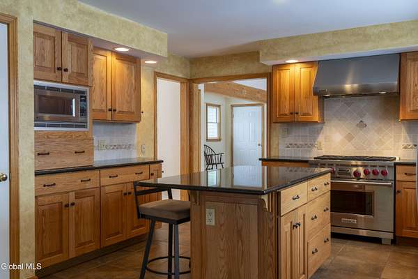 This home features a Gourmet Kitchen with immaculate custom hardwood cabinetry, granite countertops, porcelain tiled flooring and backsplash, stainless steel appliances, and a 36-inch Wolf commercial grade gas stove with a matching stainless steel Wolf exhaust hood. If you don't know how to cook, this kitchen will provide a great incentive! Unfinished Bonus Room over the garage is accessed from the Family Room, and along with the unfinished dry basement can provide a blank canvas for future opportunities and expansion. Garage and Basement both have epoxy floor finishes that are extremely durable and easy to clean. Oversize Family Room has a cathedral ceiling with exposed beams. Large windows throughout the home provide lots of natural light and views. Rear Sunroom and adjacent Trex Deck provide year-round breath-taking views of the private, picturesque back yard that includes a pool near the deck and pond beyond the meadow - perfect for ice skating in the winter and a wildlife playground year-round. Plenty of room for a fire pit to enjoy in the evening with family and friends. Property includes a 16' x 24' barn with concrete floors and electric for storage.