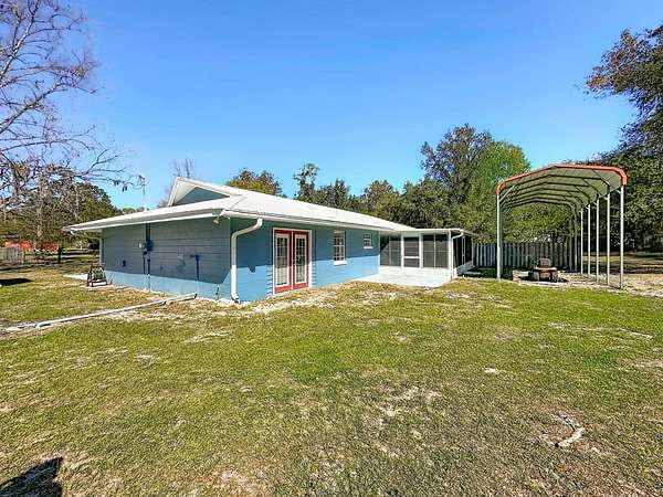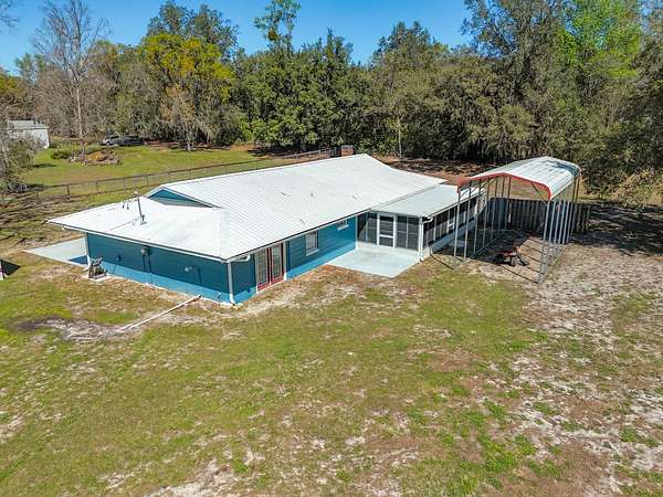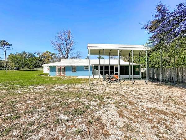 Equestrian-ready 3.85-acre property with direct access to Florida DEP land adjacent to Rice Creek Conservation Area, offering miles of scenic riding trails. This fully fenced and cross-fenced property is designed for horse enthusiasts, featuring a three-stall stable with feed/tack room, round pen, and open pasture space. The property includes a well-maintained 3 bedroom, 2 bathroom block home with approximately 1,827 sq ft under heat and air, plus a 336 sq ft screened Florida room-perfect for enjoying the peaceful rural surroundings. In addition to the main home, there is a bonus 1 bedroom, 1 bathroom living space converted from a detached garage/workshop, offering flexibility for guests, or a private office. Additional features include: RV carport for storage or travel convenience. Fully fenced with two cross-fenced sections for livestock or land management. Direct access to conservation land with no rear development. Private, natural setting ideal for equestrian or outdoor lifestyle. Whether you're looking for a horse property, private retreat, or multi-use acreage, this property offers a rare combination of functionality, privacy, and direct trail access. Located in Putnam County, famously known as the "Bass Capital of the World," enjoy easy access to some of Florida's best freshwater fishing, boating, and outdoor recreation. Opportunities like this are hard to find-schedule your private showing today and experience it for yourself.
