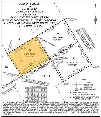 Visit this 5-acre unrestricted lot near Waco TX by searching Hill County Road 3352 Hubbard TX 76648 on any map app. When near the land, enter 31.780648 -96.794079 for Cattle Walk Way. Turn in and go to 31.78199 -96.79118 to reach the gate entrance at one of the corners.
