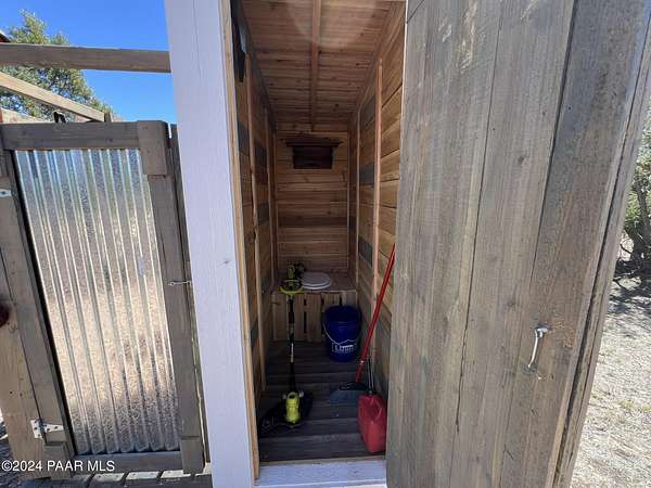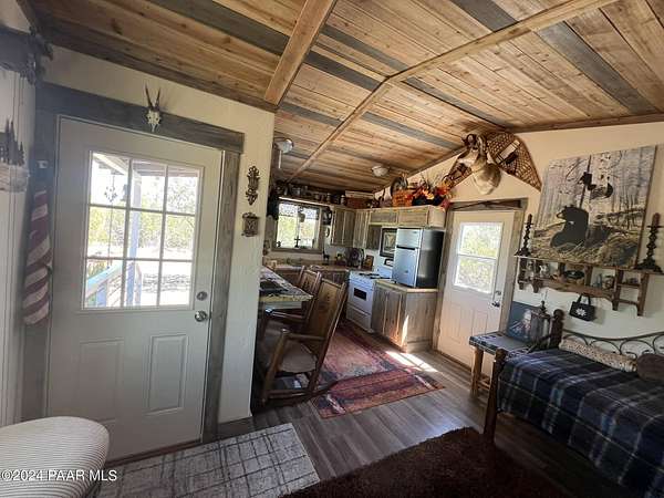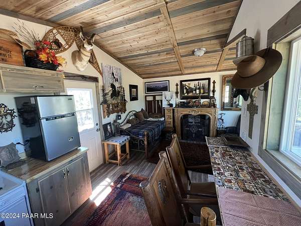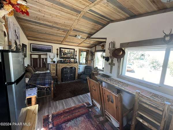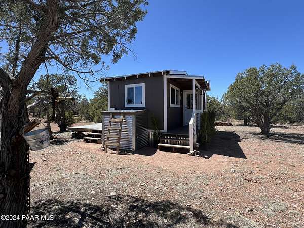 Turn-key, tiny-house off-grid Cabin getaway situated on your own property! Fully furnished, newly built, super cute cabin on beautifully treed 10 acre parcel. All off-grid services on site with kitchen sink, large water tank, solar panel powered water pump, compost toilet, shower, hot and cold water, brand new refrigerator, brand new Kodiak off-grid propane stove and oven, even Air Conditioning! This is a fully finished, nicely decorated and tastefully furnished stand alone cabin on its own property with deeded real estate and super low taxes. Bring your toothbrush, a good book, hiking boots, side-by-side or Jeep and enjoy peace and serenity in your own private sanctuary! Located just over 3 miles from the water station and approximately 4 miles to pavement and the National Forest.