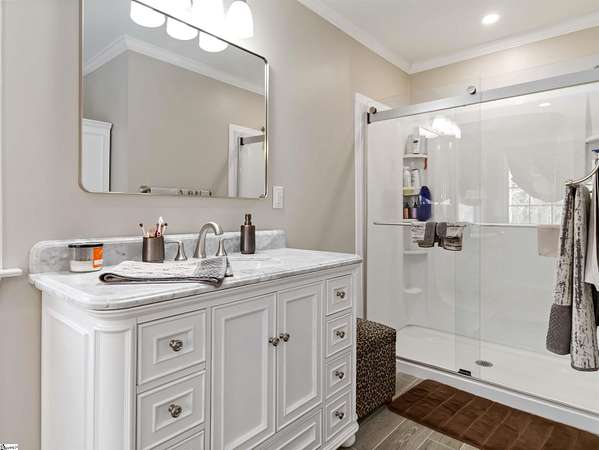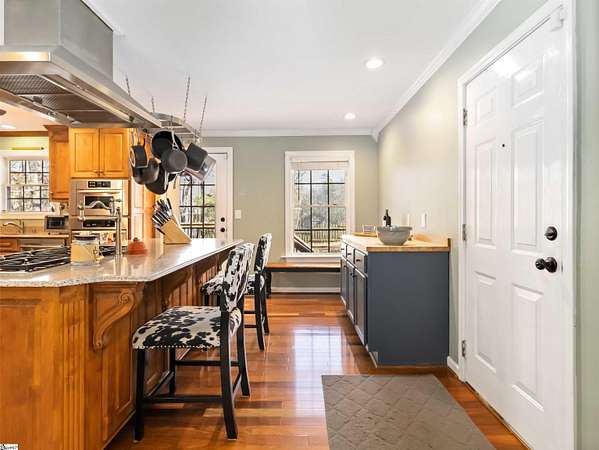 Nestled on 5.5 private acres, this exceptional property offers the perfect blend of space, privacy, and convenience -- just minutes from everything Fairview Road has to offer. Set far off the road for ultimate seclusion, the home welcomes you with a classic front porch -- the perfect spot for morning coffee or quiet evenings overlooking your acreage. Inside, you'll find beautiful Brazilian walnut flooring that adds warmth and richness to the main living spaces. At the heart of the home is a custom kitchen, thoughtfully designed with quality craftsmanship and functional layout -- ideal for everyday living and effortless entertaining. Whether hosting gatherings or enjoying a quiet night in, this space truly anchors the home. The home features a full basement complete with a game room and dedicated workshop area, making it ideal for hobbies, entertaining, or additional flex space. Multiple garages provide abundant room for vehicles, equipment, or storage. The primary bathroom has been beautifully updated, offering a fresh, modern retreat. A brand new roof adds peace of mind and long-term value. If you've been searching for acreage, privacy, functional space, and a convenient location all in one -- this property delivers. Enjoy country living with the benefit of shopping, dining, and everyday conveniences just minutes away. Call Mackenzie Turner at (864)367-7007 for your private showing today!