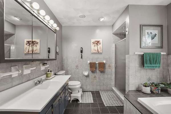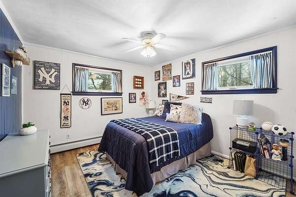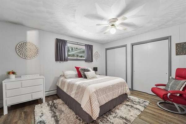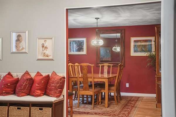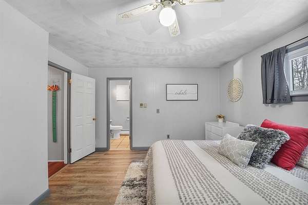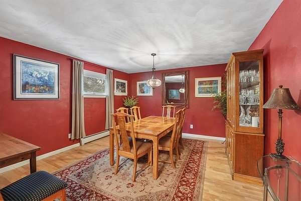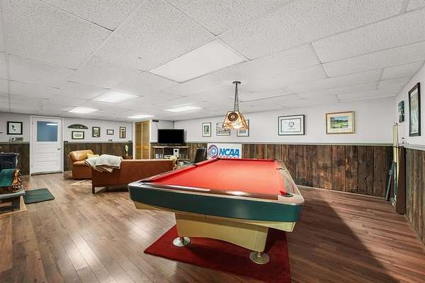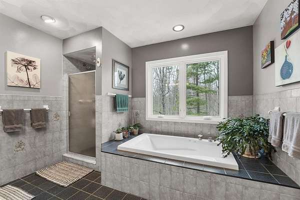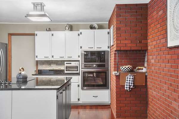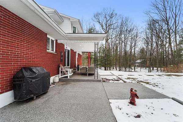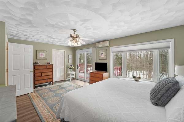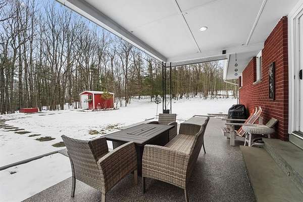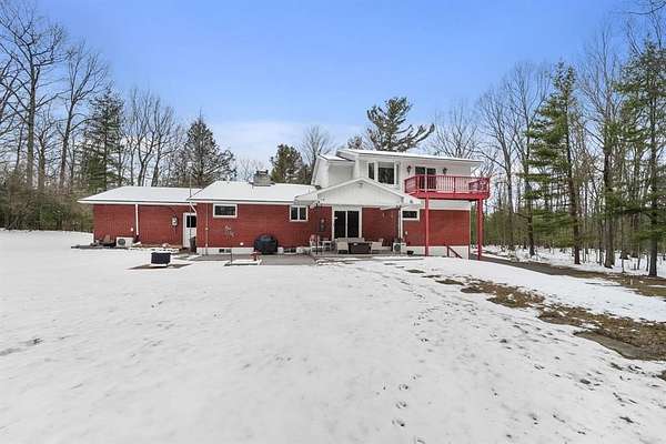The eat-in kitchen is both functional and inviting, highlighted by Brazilian cherry hardwood floors, a center island, and ample space to gather. Storage is exceptional throughout, with generous closets, a dedicated workshop, and additional storage areas to keep everything organized. A half bath off the garage includes a built-in dog wash station for added convenience. Outdoor living is just as appealing with a covered front porch, back patio, and a private deck off the primary bedroom overlooking the expansive yard.
