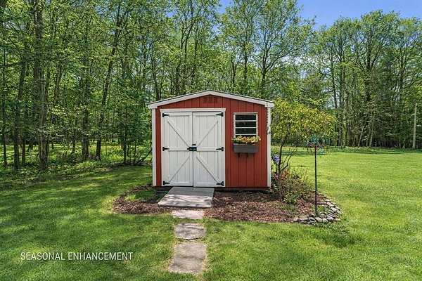 - Cable Available, Covered Patio, Covered Porch, Landscaped, Shed, Shrubs/Flowers, Trees