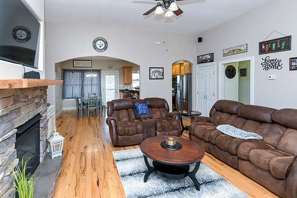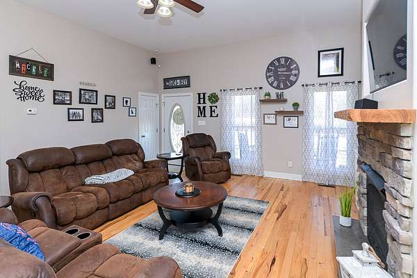 Spanning 1,586 square feet, this 3-bedroom, 2-bathroom home is designed for efficiency and style. Relax in a spacious living room anchored by a gas log fireplace flanked by custom built-in cabinets. Hardwood floors flow seamlessly throughout the main living areas and bedrooms. The gourmet Kitchen features a gas stove and durable tile floors. For ultimate flexibility, the stove area is also pre-wired for a 220V electric conversion.