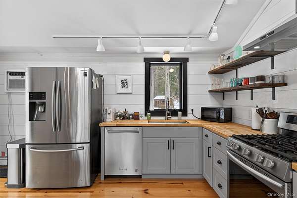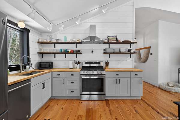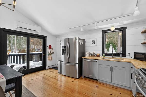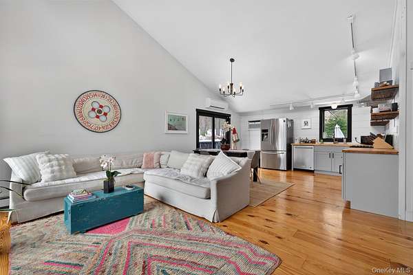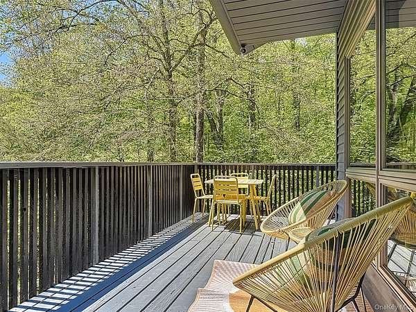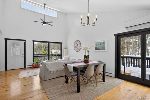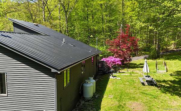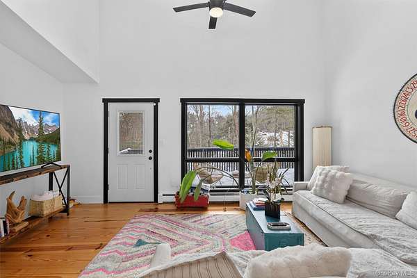 Tucked into the heart of the Catskills, this design-driven retreat delivers a refined balance of modern architecture and total nature immersion. Soaring ceilings, expansive windows, and clean architectural lines create a striking yet understated aesthetic, with wooded views showcased from nearly every room. Wide-plank light wood floors and an open, airy layout establish a calm, contemporary vibe-equal parts sophisticated and effortlessly livable. The main level is thoughtfully composed for comfort and flow. The primary suite feels like a private spa escape, complete with its own bath and deep soaking tub. A second bedroom and full hall bath provide flexibility for guests, creative space, or remote work. Downstairs, the finished walk-out lower level expands the lifestyle potential with an additional full bath and generous open space-ideal for hosting, media lounge, fitness studio, or extended guest quarters. It's adaptable, stylish, and ready to meet the moment. A major bonus: the oversized pole barn. Substantial, versatile, and full of opportunity-use it for storage, a workshop, studio space, or reimagine it entirely. Outbuildings of this scale add serious value and future upside. Located just minutes from Rio Reservoir for swimming, paddling, and scenic trails, and within easy reach of local dining and shopping, this home offers the ultimate blend of privacy and accessibility. Modern. Elevated. Immersed in nature. A Catskills property that feels current, curated, and ready for its next chapter. Let's schedule your private showing.