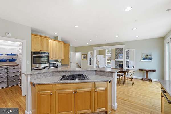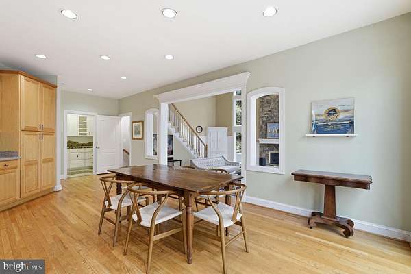 - Breakfast Area, Ceiling Fan(s), Chair Railings, Crown Moldings, Curved Staircase, Dining Area, Eat-In Kitchen, Family Room Off Kitchen, Formal/Separate Dining Room, Gourmet Kitchen, Island Kitchen, Open Floor Plan, Pantry, Recessed Lighting, Sauna, Soaking Tub Bathroom, Table Space Kitchen, Walk-In Closet(s), Walk-In Shower Bathroom, Window Treatments, Wood Floors