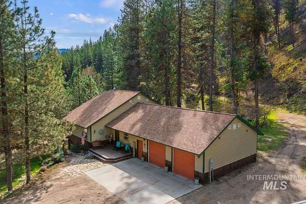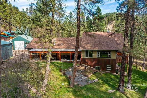 GEOTHERMAL Home with Acreage and Public Land Access!! Discover nearly seven acres of Idaho living in this custom home located in beautiful Garden Valley. Designed for comfort and flexibility, the home features five bedrooms, main-level living, and a spacious lower-level family room with warm pine built-ins. Large kitchen windows frame seasonal views of surrounding hillsides, pasture, and the backyard. A remarkable geothermal system provides warm floors, an inviting outdoor soak, and abundant irrigation water. Low cost heat! In addition, the property includes a spring with established water rights, offering valuable long-term water resources. The geothermally heated shop functions as a RV bay, and workspace, complemented by a heated two-car garage and heated driveway pad for year-round convenience. The barn includes two stalls, a tack room, hay storage, and additional shop space. Fenced areas, corrals, and multiple outbuildings accommodate a variety of uses, from equipment to animals. Bordering the Boise National Forest, and steps away from the South Fork of the Payette River, this property offers privacy, recreation, and the natural beauty Idaho is known for. Low monthly utilities with Geothermal heat!