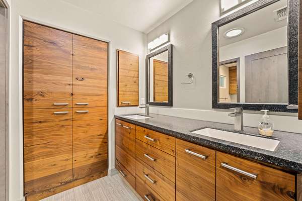 - Breakfast Bar, Built-In Features, Ceiling Fan(s), Central Vacuum, Double Vanity, Enclosed Toilet(s), High Speed Internet, Kitchen Island, Linen Closet, Open Floorplan, Pantry, Primary Downstairs, Shower/Tub Combo, Smart Light(s), Smart Lock(s), Smart Thermostat, Solar Tube(s), Stone Counters, Tile Shower, Vaulted Ceiling(s), Walk-In Closet(s), Wired For Data, Wired For Sound