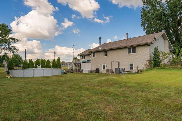 This is your opportunity to own a 5 acre lot in a GREAT location! Welcome home to this 5 bed 3 bath, walk-out basement home. The home is tucked away on a gorgeous piece of land. If you've been searching for a home with room to spread out while still staying close to town, this one checks the boxes! The property is fully fenced and includes two versatile outbuildings: one perfectly sized as a single-car or boat garage, and the other with endless potential as a workshop, corral, or extra storage. Sidewalks and city utilities make life convenient, plus a paved trail runs right behind the property, connecting you to parks, restaurants, churches, and shopping.As you walk through the doors, be welcomed by a spacious living room with high ceilings and a wood burning fireplace. This home features soaring ceilings, an abundance of natural light, and fresh updates throughout, including new flooring and paint. Off the living room you will find the kitchen and a formal dining room. The main level also includes the master bedroom with an attached master bathroom and a walk-in closet; 2 additional bedrooms and an additional full bathroom. Both the main level and basement have washer & dryer hook ups. Make your way downstairs to find an additional living space, 2 more bedrooms, full bathroom and a work-out room that can also be used as an office or extra space for whatever you may need. With multiple entrances and living areas, it's a great setup for multi-generational living.Enjoy sunsets on the deck by the pool on your expansive west facing deck. A newer roof and heat pump give peace of mind, so you can move right in and enjoy. This home can be completely self-sufficient with a back-up generator. Schedule your showing today and fall in love with your new home!