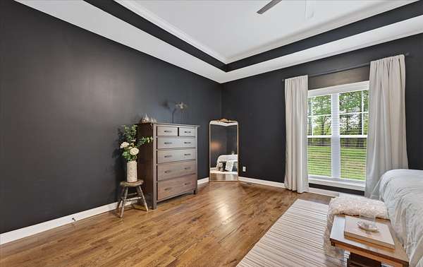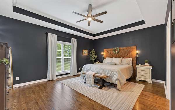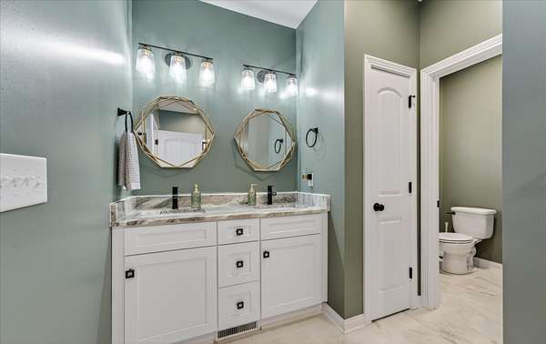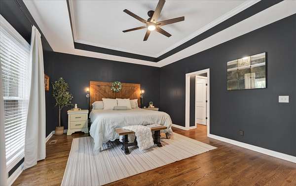 The separate primary suite offers a private retreat with dual walk-in closets and a layout that balances comfort and functionality.