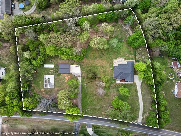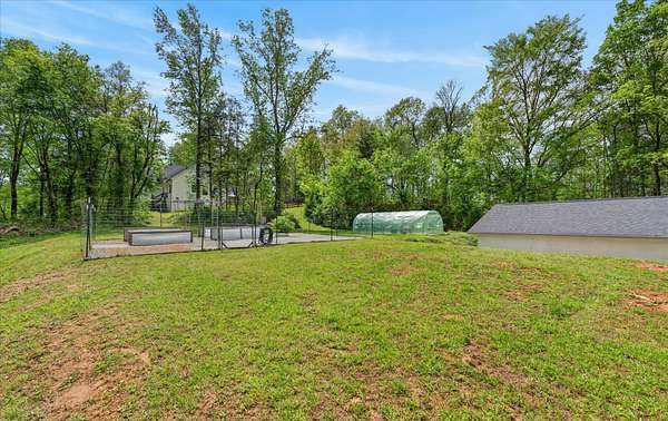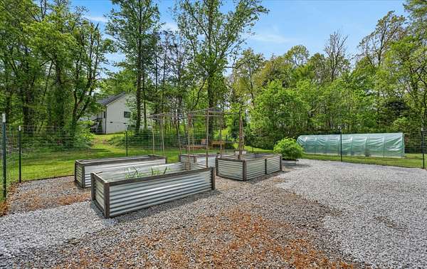 The 2.5-acre property features a private walking trail, raised garden beds, greenhouse, and partially fenced acreage with room to expand or enjoy as-is.