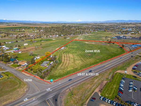 ATTENTION INVESTORS! 17.62 Ac of MUE with amazing location at the corner of Colfax and US 97 and hwy 26 with an average daily vehicle count of over 17,000. Total of 2 parcels (1.19ac & 16.43ac) annexed into the city of Madras and sewer main is near the property line, This property is a huge opportunity. Property use includes Large retail complex or Travel Center, or Hotel or light manufacturing or vehicle dealership or ? Total of 8,770sq.ft. and includes the following: 2,217sq.ft. house, 1248sq.ft. Shop, 3,455sq.ft. Retail Store / Showroom, 1,850sq.ft. 3 bay finished shop. the larger property is currently used as residential and the smaller piece is used as MUE Commercial. All property can be used as MUE. Call your agent for the backup package and showing. Seller will also sell the parcels separately.