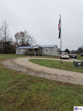 Enjoy peaceful country living in this 2018 3-bedroom, 2-bathroom doublewide home set on 3.24 beautiful acres. This property offers plenty of space to spread out and enjoy the outdoors, complete with a stocked pond perfect for relaxing afternoons of fishing or simply taking in the view. The home features a spacious open floor plan, combining the living, dining, and kitchen areas for comfortable everyday living and entertaining. The primary suite includes a private bathroom, while two additional bedrooms and a second full bath provide plenty of space for guests. Located in a quiet rural setting, this property offers privacy and tranquility while still being just a short drive from local amenities and Nolin Lake. Whether you're looking for a peaceful retreat, a small homestead, or a place to enjoy nature, this home has it all.
