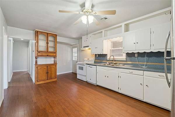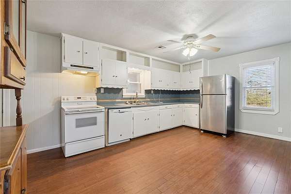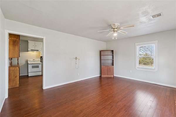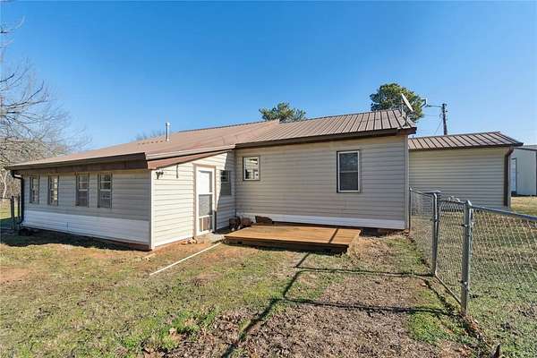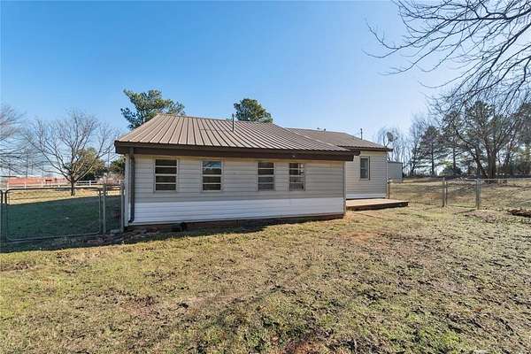 Welcome home to this peaceful 7.5 acre retreat in Shawnee which has easy access from a paved road. It features a mix of some open pasture and mature trees as well as a pond. Inside, you'll find an easy-living layout with the same flooring carried throughout the home for a seamless look and low-maintenance care. The oversized kitchen is the heart of the home, offering generous prep areas, plentiful cabinetry, and room to gather. The bedroom wing features three comfortable bedrooms, a full bath with walk in shower and a half bath attached as an ensuite to one of the bedrooms. A walk-in safe room provides added peace of mind and doubles as a large walk in closet. Off the living spaces, an extra-large utility/mud area sits inside the enclosed porch-perfect for laundry, freezers, crafts, pets, or extra storage.. Outside, the land is the star: Seven and a Half acres which is partially wooded, ideal for trails, wildlife watching, and weekend adventures. Enjoy morning coffee on the front porch, set up a fire pit under the stars, or fence a portion for animals. The insulated shop with concrete floor, electric service, and an overhead door is ready for your vehicles, projects, storage, or as a hobby workspace. With its private setting and practical amenities, this Shawnee property blends country comfort with everyday convenience-plenty of space to spread out, work, and play.