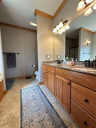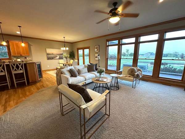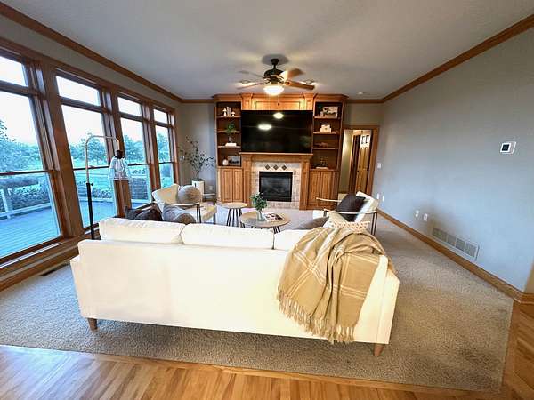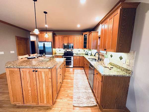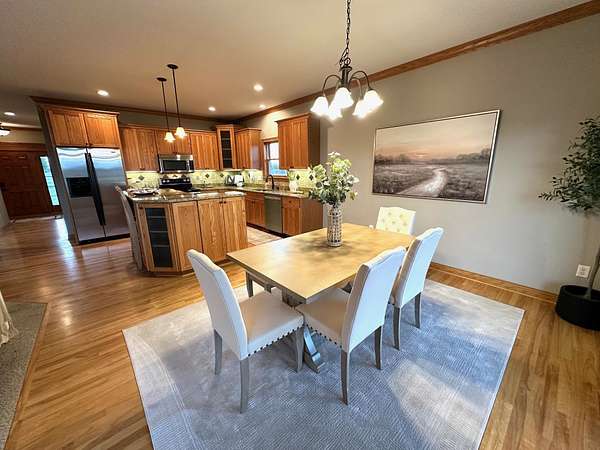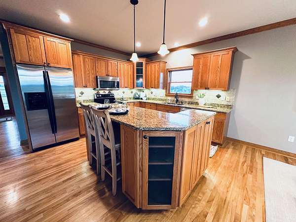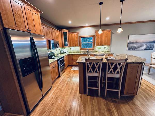 Prepare to be taken back by this distinguished two-story residence. With over 3700 finished square feet- masterfully crafted and lavishly finished with beautiful living space. Setting on three breathtaking acres, every inch of this estate exudes luxury and warmth-from the inviting front porch to expansive decks, professionally designed landscaping, a cozy inviting firepit, and an astounding garage capacity for seven vehicles-yes, seven! The attached garage is even heated for your comfort! The gourmet kitchen, featuring abundant cabinetry, sleek countertops, and premium stainless steel appliances, is perfectly tailored for both everyday living and memorable gatherings. Enjoy effortless entertaining in the spacious dining room, which opens directly to the deck.This is more than just a house-it's a lifestyle, thoughtfully designed for those who value distinction, comfort, and the freedom of extraordinary space. With the primary bedroom suite on the main level, 2 bedrooms, a loft and full bath on the second level and a second primary suite in the lower level, everyone is sure to have comfort and privacy. The finished basement is fabulous for movie or sports watching nights - complete with a wet bar for snacks and drinks. The yard is nice and flat - perfect for backyard baseball games or the garen enthusiast! Come see what makes this home truly unforgettable! You aren't going to want miss out! Schedule your viewing today!