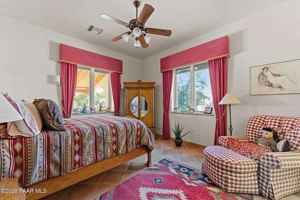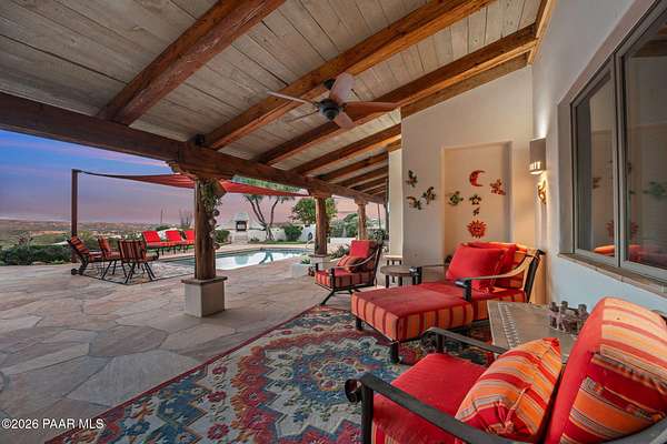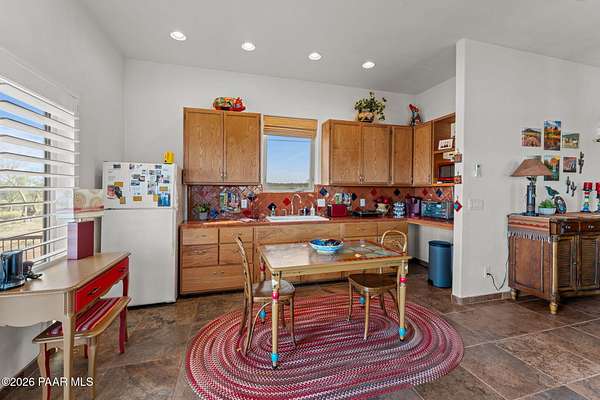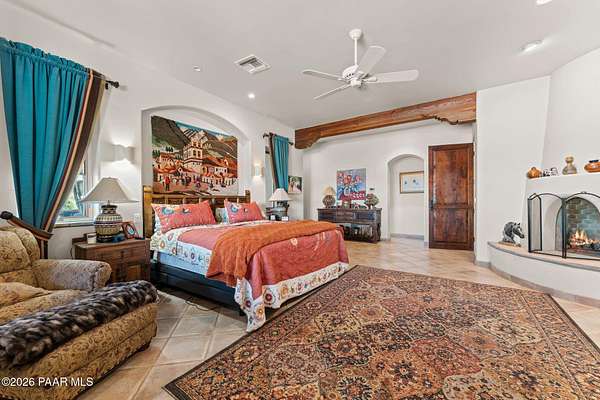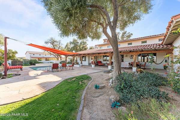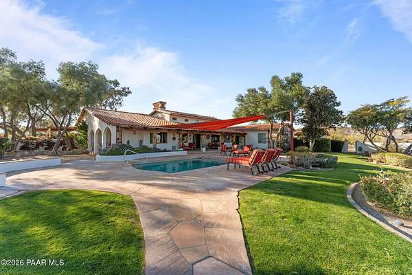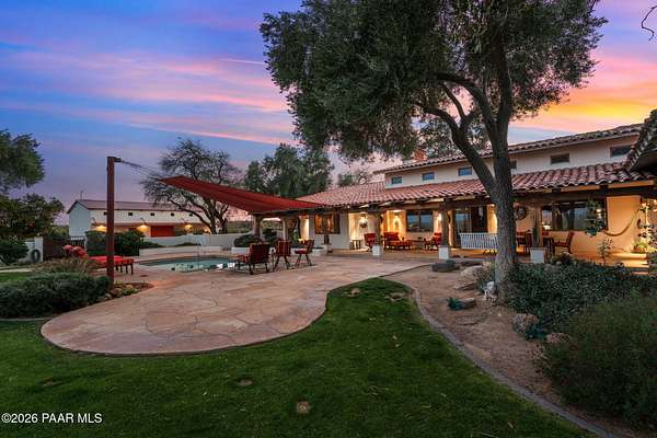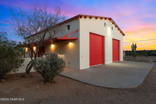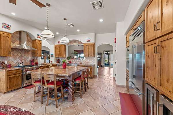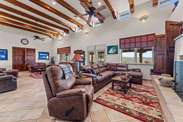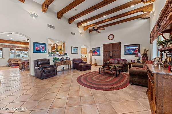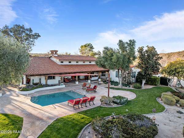 Experience a truly once-in-a-lifetime opportunity to own an extraordinary Spanish-style horse ranch set on 43 breathtaking acres overlooking Martinez Wash in Wickenburg, Arizona! Properties of this caliber - combining architectural beauty, privacy, and a fully equipped equestrian setup - rarely come to market. The 4,027 sq. ft. main ranch residence captures the timeless elegance of classic Spanish design. Inside, you'll find rich tile flooring, solid Spanish-style wood doors, iron window valances, and soaring over height ceilings with exposed wood beams that create warmth and character throughout the home. The showstopping kitchen is truly the heart of the home, featuring a massive island, stunning granite countertops, custom cabinetry, tile backsplash, walk-in pantry, and high-end