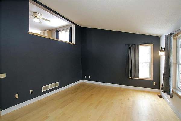 The three-level split home features 3 bedrooms, 2 baths, and many updates, including striking blue siding, a new roof, and a freshly tarred driveway.