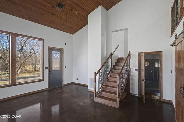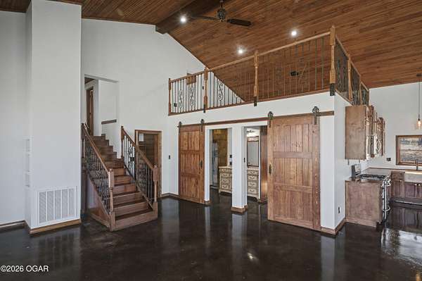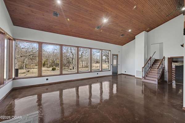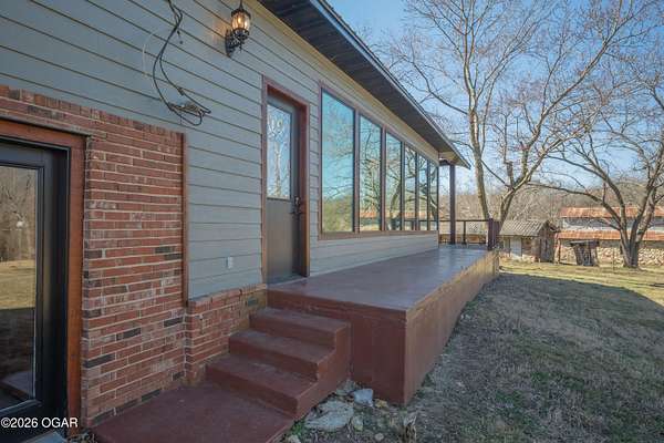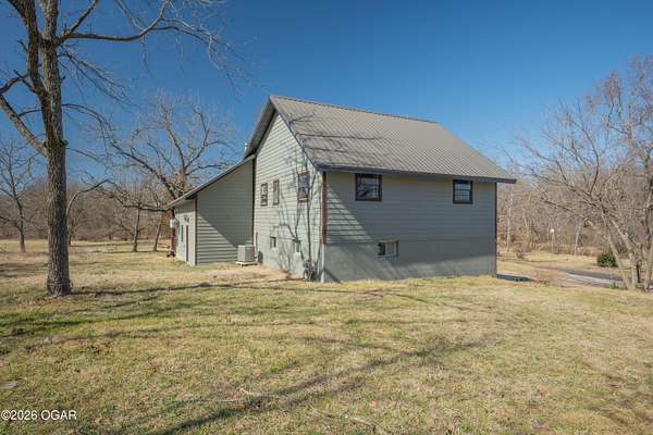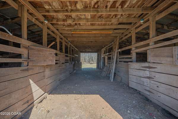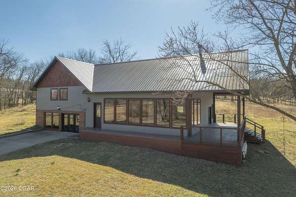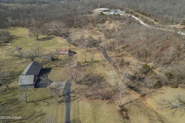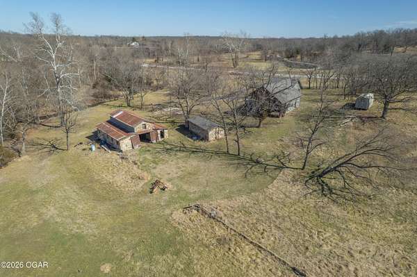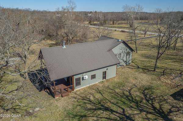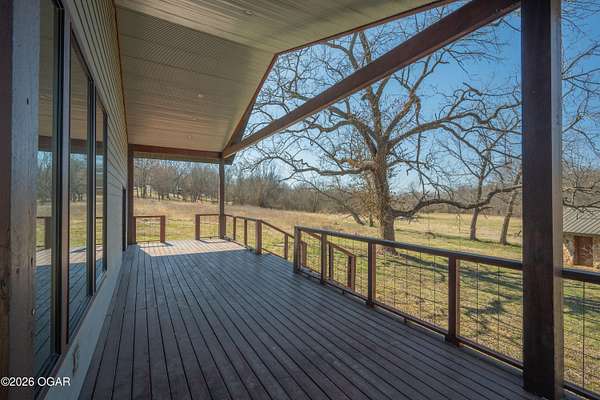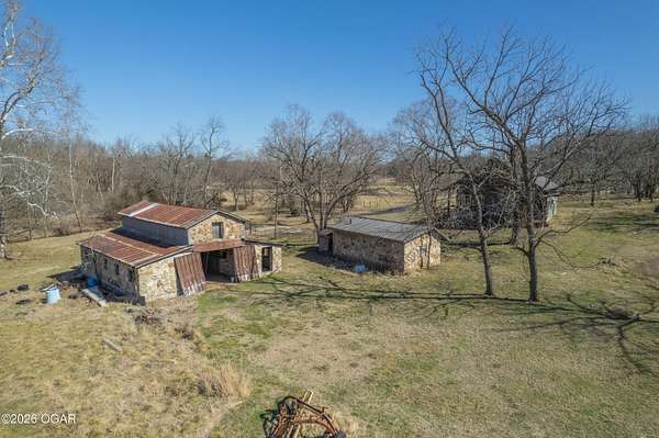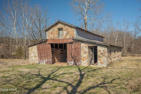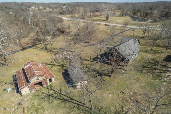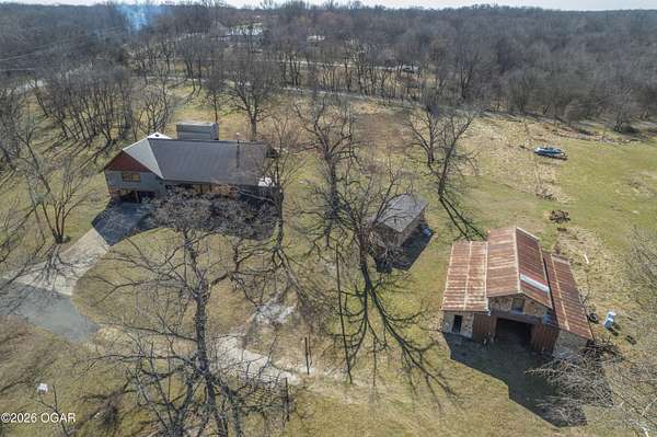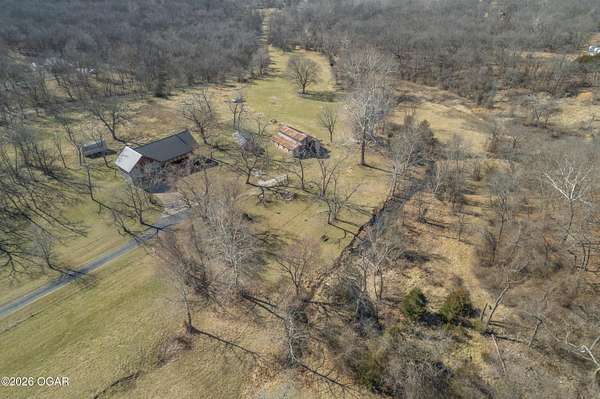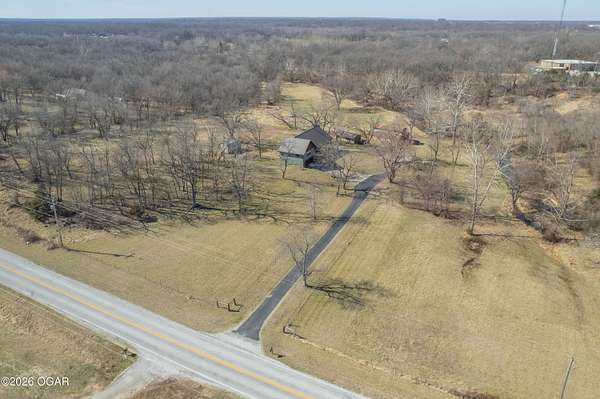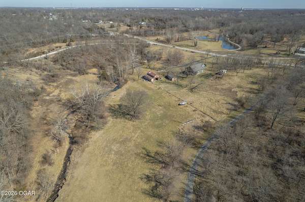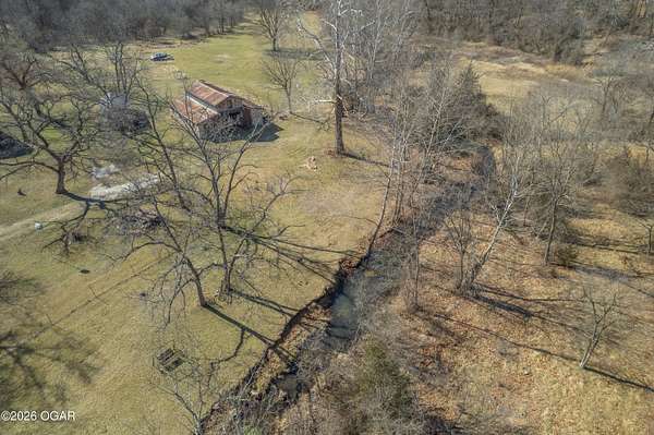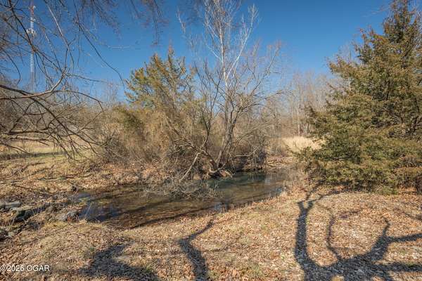 25.4 Acres | Spring-Fed Water | Custom Features | Minutes from Town Exceptional 25.4-acre ranch property located just 1 mile from 32nd Street and minutes from 32nd & Range Line Road, offering privacy, water features, and quality construction with convenient access to Joplin amenities. This property features a spring-fed creek and artesian-style spring pond, making it ideal for horse and cattle use. Improvements include a rock barn, additional outbuilding, and fenced acreage suitable for livestock or recreational use. The residence showcases vaulted architecture with an 18'6'' cathedral ceiling at the beam peak and 12-foot walls, creating an open and spacious living environment. Large premium Pella windows provide abundant natural light. A durable metal roof offers long-term performance. Interior highlights include: - Marble kitchen sink - Wet-room style bathroom with two-person jacuzzi tub and wall shower - Marble-top vanity - Antique copper sink upstairs - Two Hunter ceiling fans inspired by the original ceiling fan design New additions feature 2x6 exterior wall construction for enhanced insulation and structural strength. Additional features include: - Safe room - Attic access with thermostat-controlled attic fan - Quad electrical plug-ins in newly built areas - Exterior plug-ins - Expansive deck with recessed can lighting - Converted garage space suitable for guest quarters, mother-in-law suite, or flex space A rare opportunity to own acreage with natural water sources, functional ranch improvements, and substantial residential upgrades -- all within minutes of city conveniences.