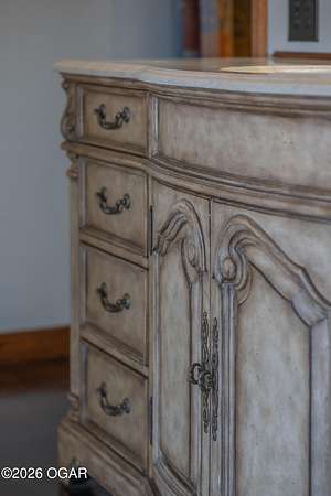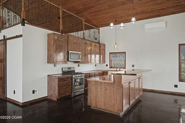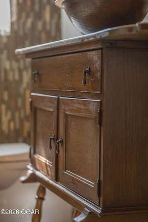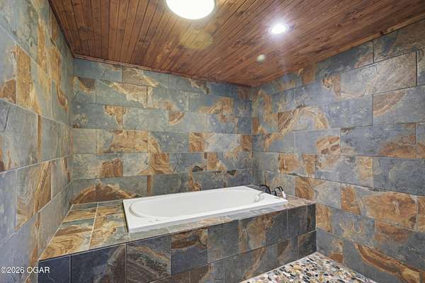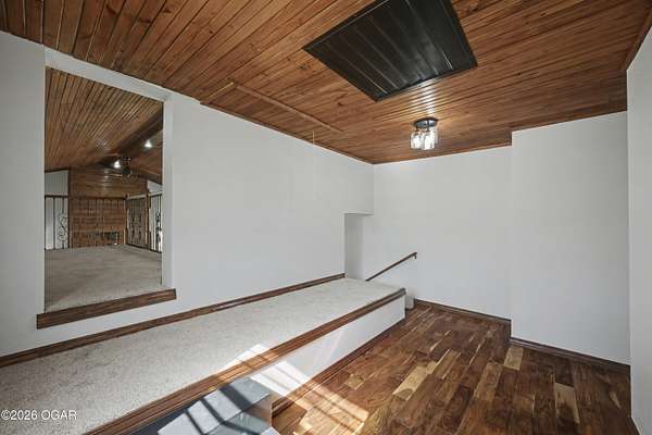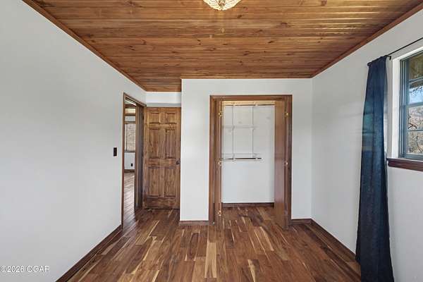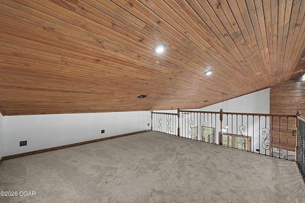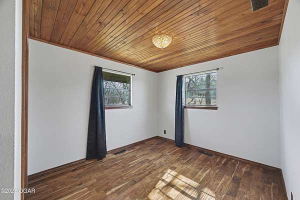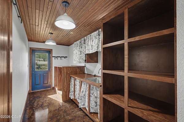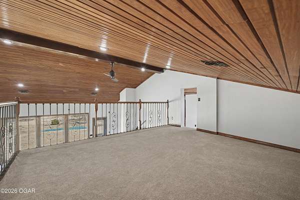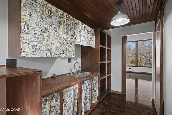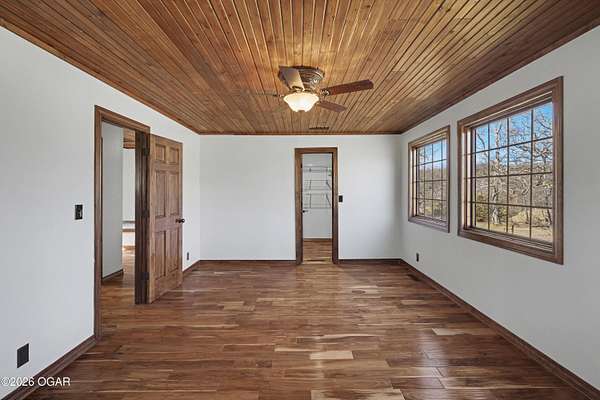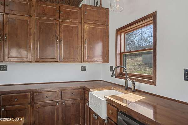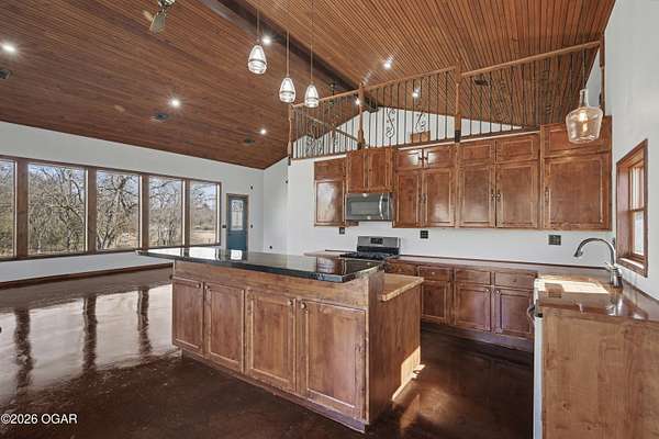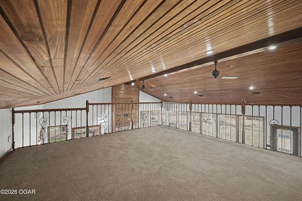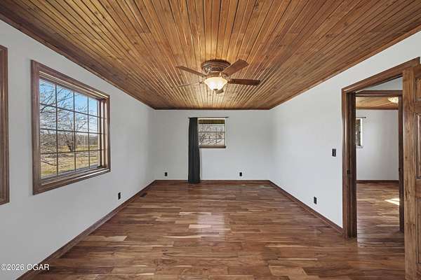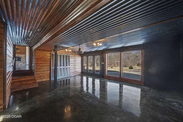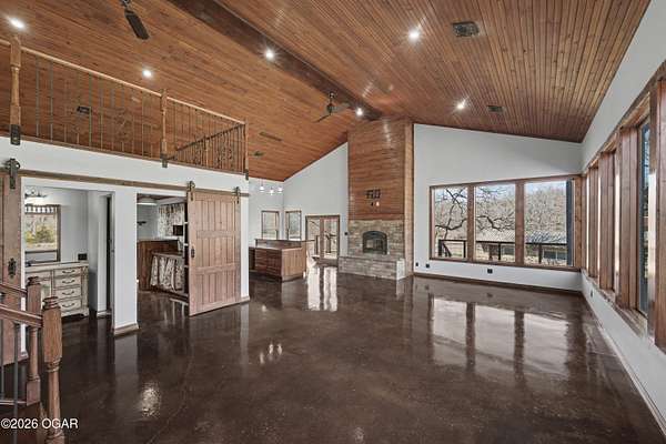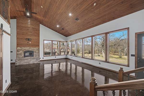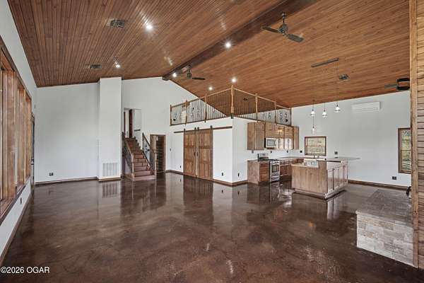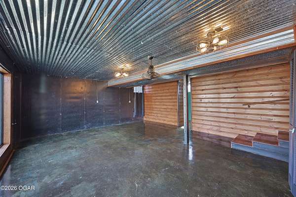 25.4 Acres | Spring-Fed Water | Custom Features | Minutes from Town Exceptional 25.4-acre ranch property located just 1 mile from 32nd Street and minutes from 32nd & Range Line Road, offering privacy, water features, and quality construction with convenient access to Joplin amenities. This property features a spring-fed creek and artesian-style spring pond, making it ideal for horse and cattle use. Improvements include a rock barn, additional outbuilding, and fenced acreage suitable for livestock or recreational use. The residence showcases vaulted architecture with an 18'6'' cathedral ceiling at the beam peak and 12-foot walls, creating an open and spacious living environment. Large premium Pella windows provide abundant natural light. A durable metal roof offers long-term performance. Interior highlights include: - Marble kitchen sink - Wet-room style bathroom with two-person jacuzzi tub and wall shower - Marble-top vanity - Antique copper sink upstairs - Two Hunter ceiling fans inspired by the original ceiling fan design New additions feature 2x6 exterior wall construction for enhanced insulation and structural strength. Additional features include: - Safe room - Attic access with thermostat-controlled attic fan - Quad electrical plug-ins in newly built areas - Exterior plug-ins - Expansive deck with recessed can lighting - Converted garage space suitable for guest quarters, mother-in-law suite, or flex space A rare opportunity to own acreage with natural water sources, functional ranch improvements, and substantial residential upgrades -- all within minutes of city conveniences.