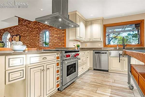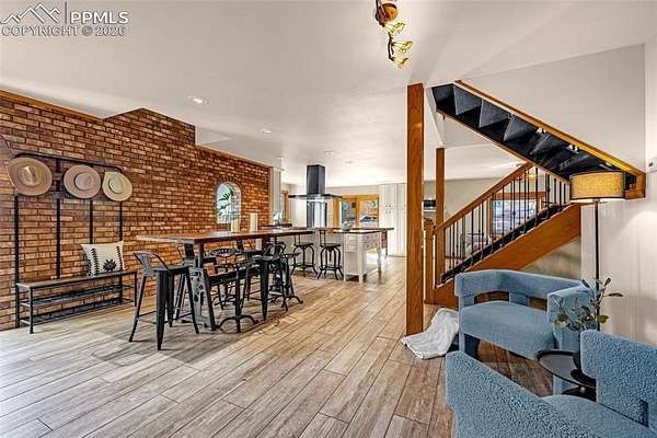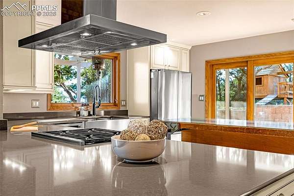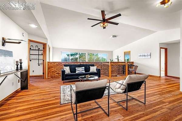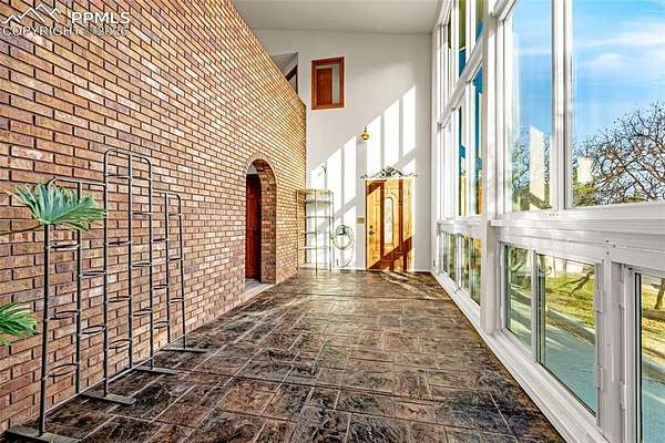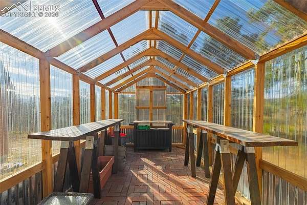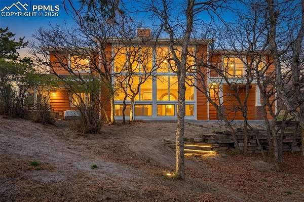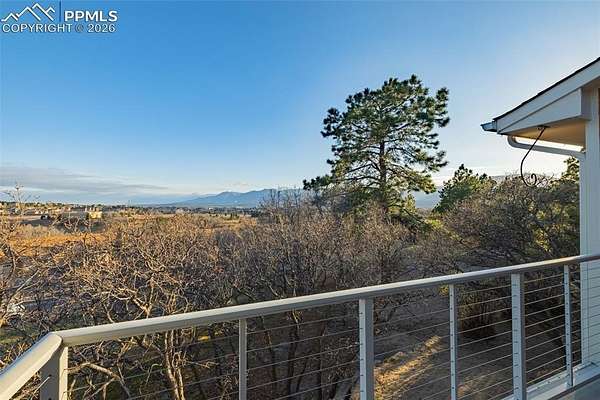BEAUTIFULLY UPDATED WOODMOOR 2-STORY ON A DOUBLE 1.77 ACRE LOT WITH STUNNING CITY & PIKES PEAK VIEWS! This move-in ready home is spectacularly updated and packed with character and a slight mid-century modern aesthetic. Upgrades including MILGARD WINDOWS AND SLIDERS, plus durable and fire-resistant James Hardie board siding. Step inside to LIGHT-FILLED, OPEN SPACES with MODERN touches like the striking METAL RAILINGS on the staircase and a TWO-STORY PASSIVE SOLAR SUNROOM featuring a show-stopping brick wall... the perfect place to curl up with a book or tend to your plants while enjoying incredible natural light. The STUNNING REMODELED KITCHEN with updated appliances include 6 burner gas range with overheat vent hood. Glazed maple cabinets, quartz slab countertops and one-of-a-kind ANTIQUE CENTER ISLAND WITH GLASS TOP AND DISPLAY NICHE...great and functionality for everyday living and entertaining. The home offers RADIANT IN-FLOOR HEAT ON BOTH LEVELS along with the passive solar design for AMAZING ENERGY EFFICIENCY. Upstairs features 3 bedrooms (one with a clever built-in Murphy Bed!), a LARGE LOFT/FAMILY ROOM, UPSTAIRS LAUNDRY, and a LUXURIOUS, FULLY UPDATED PRIMARY SUITE with a PRIVATE DECK overlooking jaw-dropping views. The perfect RETREAT TO ENJOY SUNRISE VIEWS OVER THE CITY AND MOUNTAINS! Outdoor living is just as impressive with multiple outdoor living spaces including a PRIVATE BACK PATIO nestled in the scrub oaks, courtyard style patio off the kitchen, PERGOLA, SPA, LARGE GREENHOUSE (just in time for spring planting), and STORAGE SHED. Of course there's also an attached OVERSIZED 2 car garage. And a huge bonus... the 1.77 ACRE LOT CAN BE SUBDIVIDED, offering the potential to SELL OFF THE EXTRA LOT for added value or future flexibility. RARE OPPORTUNITY to own a beautifully updated home with CHARACTER, EFFICIENCY, LAND, AND VIEWS... all in a PRIME WOODMOOR LOCATION!