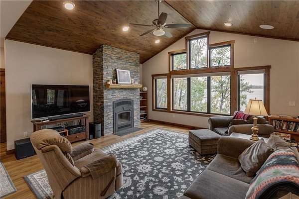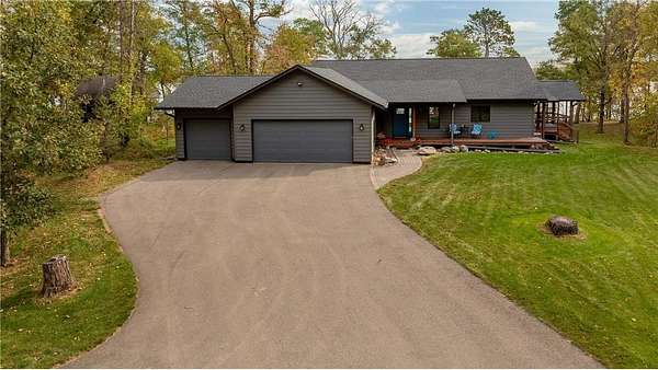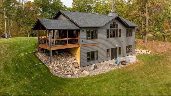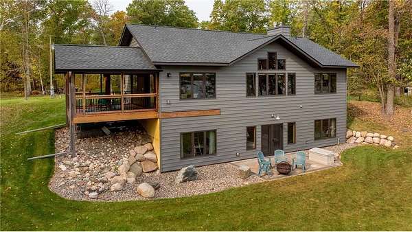 Beautiful, well built home in 2019 with 4.2 acres and 130'+ sandy lakeshore with gradual elevation on a beautiful spring fed lake just 12 minutes to shopping in Crosslake. This hidden gem of a lake is quiet, clear, and full of panfish. The property had been a resort years ago and the boat ramp is now the beach. Tar roads all the way here and a tar driveway to the triple heated garage. Almost 3,000 sq ft including the walkout. 3 beds, 2.5 baths, wood burning fireplace, exceptional heating and cooling efficiency w/ maintenance free siding. Check the feature sheet for all the mechanicals. Primary bedroom suite on main floor, two large bedrooms below, all with walk in closets (one cedar). Incredible sunrise views across a mile of water. You'll love the laundry area and the large center island in the kitchen. Dining room leads to an enclosed screen porch and future deck. Open concept living, dining, kitchen with a beautiful fireplace and vaulted pine ceilings. Hard to find acreage with sand shore on a nice lake. Privacy is yours.