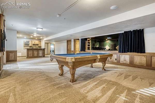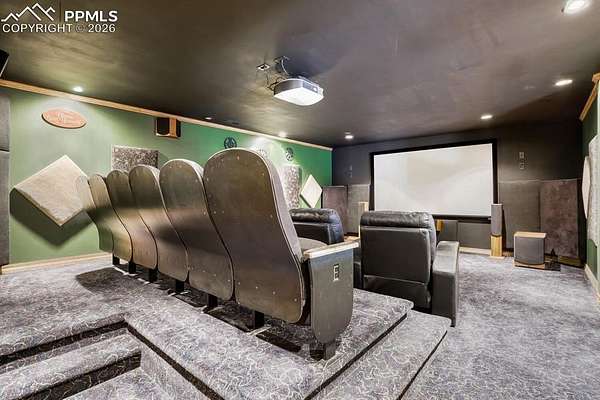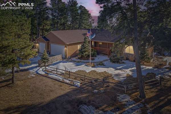 Nestled within a serene five-acre oasis surrounded by towering pines and the soothing sounds of nature, this exceptional residence offers the rare blend of privacy, comfort, and refined Colorado living. A canopy of trees frames the approach, welcoming you to a home designed for both relaxation and effortless entertaining. The main level features beautiful hardwood floors that flow throughout the open layout, anchored by a cozy fireplace that sets an inviting tone. The gourmet kitchen is a chef's delight, showcasing stainless steel appliances, a newly installed cooktop, solid-surface countertops, and a generous breakfast bar-perfect for gathering with family and friends. From the dining area, step onto a stunning covered deck with Trex decking, where the peaceful backdrop of whispering trees creates the ideal setting for morning coffee or evening sunsets. Main-level living enhances convenience, while the walkout basement expands your lifestyle options with a dedicated theater room, billiards area, and easy access to the outdoors. Sustainability and modern efficiency shine with a premium Tesla solar system featuring 27 panels and a Powerwall, ensuring both eco-friendly living and energy independence. The property continues to impress with a detached 720 sq. ft. two-car garage/workshop equipped with a 100-amp subpanel, 220-volt service, and a full attic for additional storage. A fenced greenhouse area, greenhouse waterline, motion-sensor security system, and finished three-car attached garage with heater further enhance the home's functionality. Additional upgrades, including a new well pump, offer peace of mind. This exceptional retreat combines the beauty of nature with thoughtful amenities, creating a warm, sophisticated sanctuary unlike any other. Welcome home to your private haven in the woods.