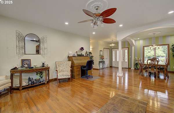 Pristine one level Executive Home with an out of this world Shop to match!You wont find this property's equal.. Rare, to say the least!Home sits on 6.8 meticulously kept yard framed with trees & shrubbery for privacy. Home sits on a gentle bluff to give you a wonderful surrounding view of natures beauty. Long private driveway for privacy & semi secluded. This one level jewel has upgrades that will impress the pickiest buyer. Gleaming hardwoods, gourmet kitchen with all the bells & whistles the home chef would love. Views from every window that boast the outdoor beauty of the yard & landscaping. Generous sized master with attached bathroom featuring walk in tiled shower, air jetted deep soaking tub, double sinks & walk in closet attached. Dont miss the theatre room with sound, tiered floor & large screen.Now lets tell you about the SHOP! nothing around like it so if your a gear head, serious tinkerer, welder, metal worker or whatever you need a 5000 sf shop for this is the one for you. Hoist, bathroom, storage, enough power for any of your needs, steel beams, insulated etc.. too much too list so you need to take a look! Covered RV parking. Parking area for all your toys too! Rural setting zoned R-10 but close to town. 1 hour to PDX 25 minutes to Longview & 1 hour to the beautiful Oregon Coast.