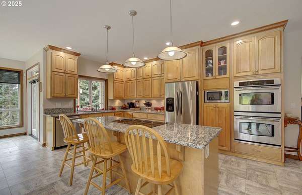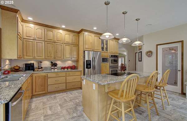 - Builtin Oven, Butlers Pantry, Convection Oven, Cook Island, Cooktop, Dishwasher, Disposal, Double Oven, Down Draft, ENERGYSTAR Qualified Appliances, Free Standing Refrigerator, Granite, Island, Microwave, Plumbed For Ice Maker, Solid Surface Countertop, Stainless Steel Appliance, Water Purifier