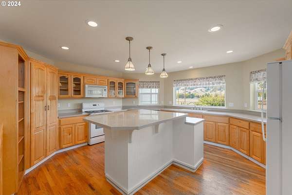 - Dishwasher, Disposal, Free Standing Refrigerator, Gas Appliances, Instant Hot Water, Island, Microwave, Pantry