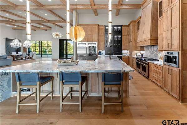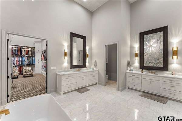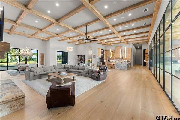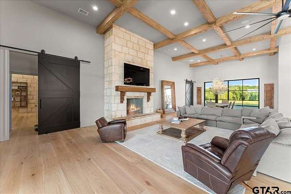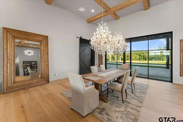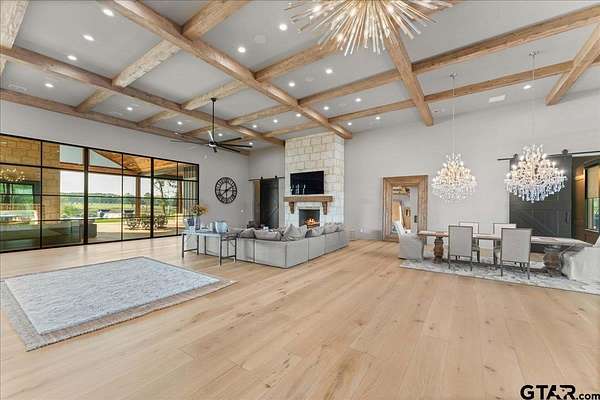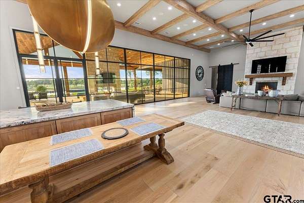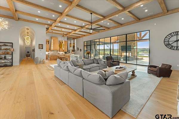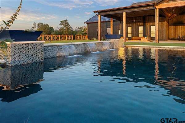 Welcome to Oak Creek Ranch. Drive through the beautiful double gated entrance and continue on down the tree lit drive that leads you to your own private 20 acre lake. Continue on across the bridge, around the lake to this stunning 4 BR - 7 BA (4 full + 3 half) home, sitting on 333 acres, which combines timeless Texas charm with refined luxury. Inside, soaring ceilings with stunning light fixtures throughout, enhanced by premium surfaces and state of the art amenities. Spacious master bedroom and bath with an extra large walk-in closet. The gourmet chefs kitchen provides premium appliances, an oversized island and cozy bench seating. Gracious formal/informal living and dining spaces flow effortlessly for both daily living and entertaining on a grand scale. Outdoor living is equally impressive, with over 6000 feet of covered porches, outdoor kitchen, a large, double-sided fireplace, and a resort style infinity-edge pool with fountains and spa overlooking the lake, offering breathtaking sunsets and views of the coastal meadows and scattered trees across the hilltops. If you would like to enjoy more majestic views, sounds of nature and tranquility, there is 99 acres that includes Mt Sinai, one of the higher points in Smith County, on the Ranch. Whether it's great deer hunting, fishing, hiking, golfing, or just relaxing, this is as good as it gets. It is more than a home. It is a private retreat for those who appreciate the finest things in life, don't miss your opportunity to make it yours!