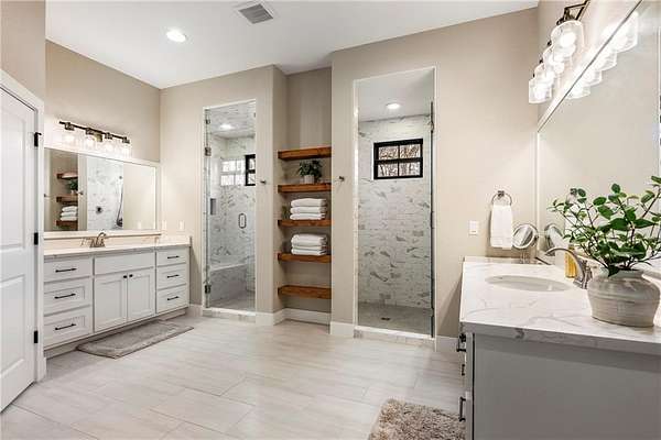 Beautiful Custom-Built Modern Inspired Farmhouse on 6 Peaceful Acres! Come home to quiet living surrounded by nature with raised garden beds, birds, fruit trees, a chicken coop, with a huge heated covered back porch to sit and enjoy it all from! Spacious open one level home with hard-to-find attached mother-in-law/guest suite. Stunning kitchen with large 12-foot island, double ovens, two pantries, and a second prep kitchen area. Master bedroom with spa like bath featuring steam shower, and large walk-in closet. Three additional guest rooms, one featuring charming built-in bunk beds. Separate guest/mother-in-law quarters features kitchenette, bedroom, and bath. Oversized 4 car garage featuring hydraulic lift in garage to assist with storing things in attic! Other features include in-house storm shelter, secret in-home access to attic, home wired for generator, Tesla charging station. So much to list! So come and see for yourself and don’t miss out on this amazing place to call home!
