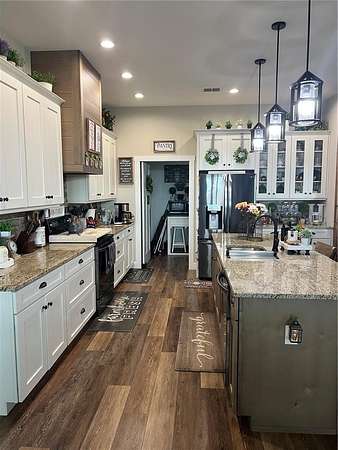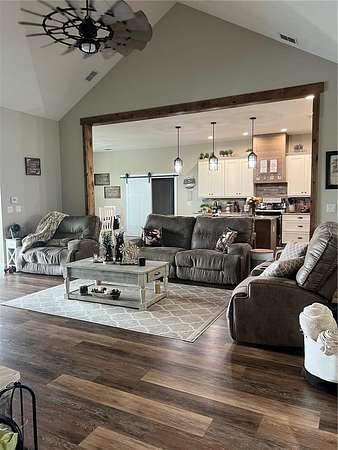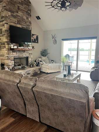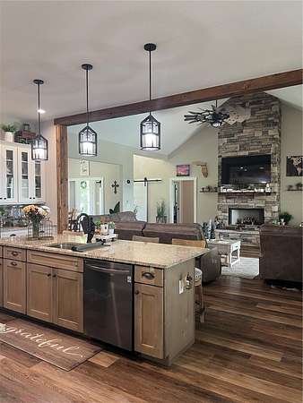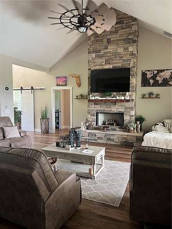 - Cathedral Ceiling(s), Ceiling Fans(s), Kitchen/Family Room Combo, Open Floorplan, Primary Bedroom Main Floor, Stone Counters, Walk-In Closet(s)