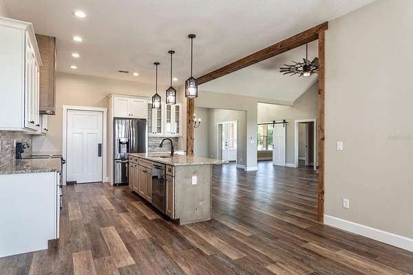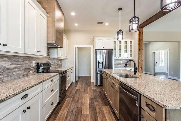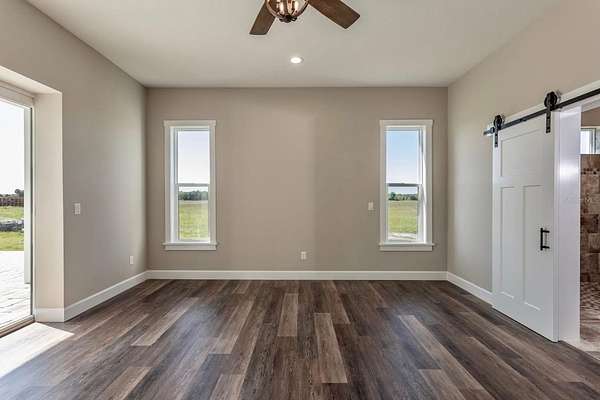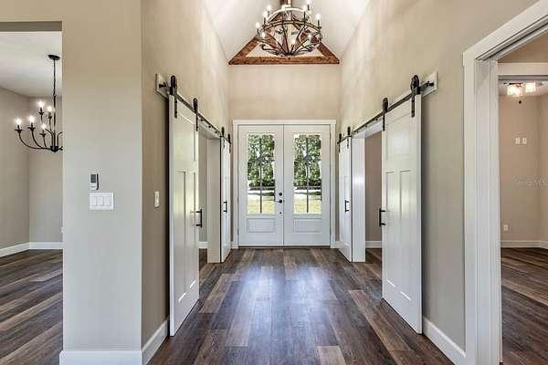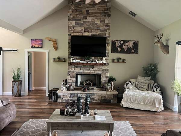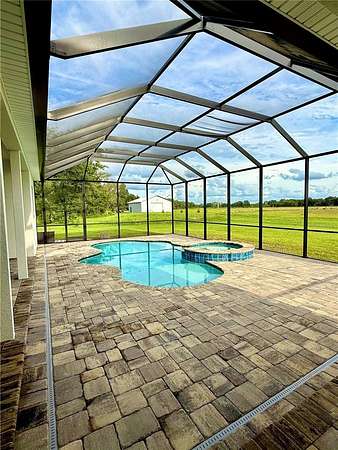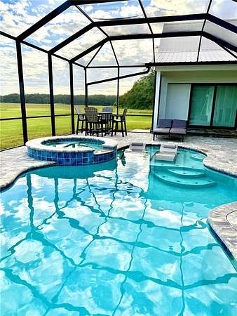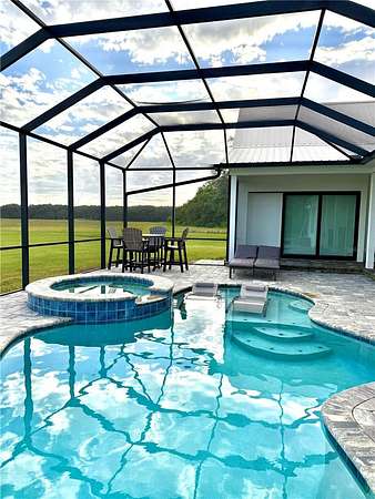 Under contract-accepting backup offers. STUNNING 10 ACRE PROPERTY!!! This 2022 Seay home is picture perfect, sits on 10 acres of cleared land and boasts the following: granite countertops throughout, all LG ThinQ appliances, a wood burning fireplace, cathedral ceilings, a water filtration system & softener, a 50 gallon electric water heater, a whole house generator, a 500 gallon propane tank (owned) and an outdoor shower. Quaint porches hug this gorgeous build and look out onto the most private & peaceful setting. Let's not forget the enclosed crystal clear heated saltwater pool paired with a separate spa and a designated propane hookup for your grill! Even more, the floor plan flows seamlessly. This four bedroom two and a half bath is customized from top to bottom and all furnishings are beautifully placed and negotiable with the sale. The location is ideal as you are only a fifteen-mile ride to the BEACH. Both historic ST. AUGUSTINE and the DAYTONA speedway are also only a short distance away. It's the ideal blend of beautiful country sunsets, ocean shore sunrises and fun filled destinations around every corner.