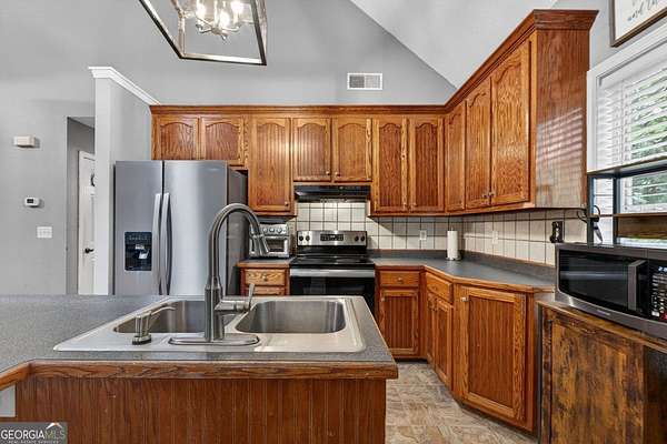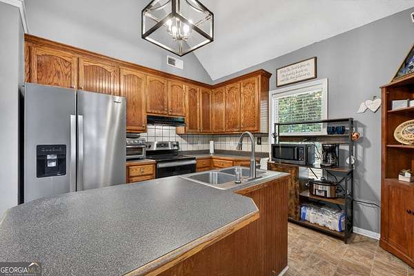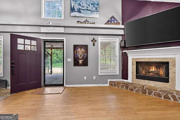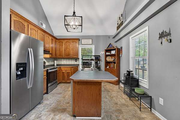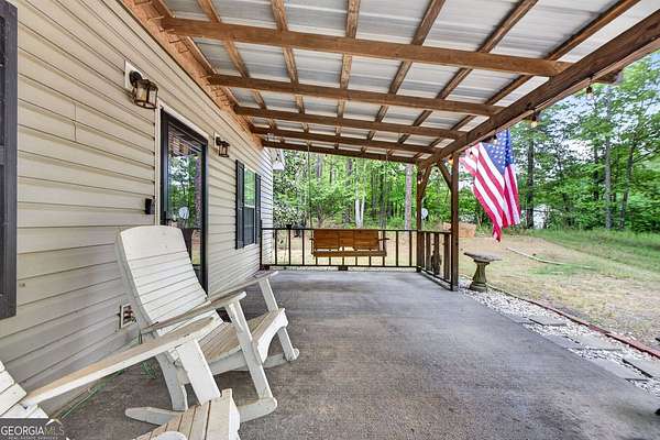 Tucked away on a private 3+ acre lot in one of North Pike County's most convenient locations, this charming 1.5-story cottage is full of heart and character! Follow the winding driveway as it leads you through the woods to this hidden little retreat offering 3 bedrooms and 2 baths! Spend your mornings on the wide covered front porch - just right for a cup of coffee and a quiet start to the day or for listening to the rain gently fall on the metal roof! Step inside and you're greeted with an open, airy living space and soaring ceilings! The family room features a cozy corner wood-burning fireplace and flows easily into the island kitchen, complete with counter seating, warm wood cabinetry, and new stainless-steel appliances (refrigerator included)! Two spacious bedrooms are located on the main level, along with a shared guest bath featuring rustic wood planked walls, dual sink vanity, tile flooring, and a linen closet! Upstairs, you'll find a large third bedroom that serves as its own private retreat with a full bath! Outdoors, there's a stone paver patio area made for gathering with friends and enjoying peaceful evenings under the stars plus an outdoor storage building for added convenience! A major bonus-AT&T fiber internet is available here, which is a big plus in this area and perfect for work-from-home, streaming, or everyday connectivity! The location truly can't be beat-just minutes to downtown Pike, local schools, and quick access to the 4-lane for an easy commute! It's the kind of place that offers a little bit of quiet country living, with just the right touch of convenience, and feels like home from the moment you arrive!