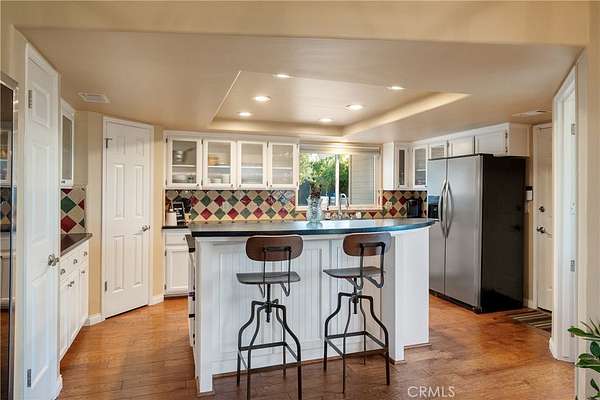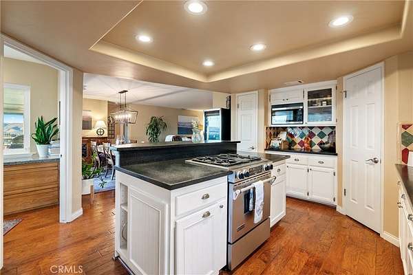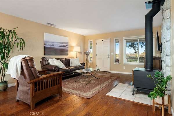 The 1,500+- sq. ft. ranch-style home offers warmth and functionality with 2 bedrooms, 2 remodeled bathrooms, hardwood floors, and a well-equipped country kitchen including stainless steel appliances, a Shaw farm sink, soapstone counters, and a center island ideal for casual entertaining. A dedicated office supports remote work or creative pursuits, while additional features include owned home solar, a new roof, Milgard windows and sliders, a Pacific Energy wood stove, and an updated well system.